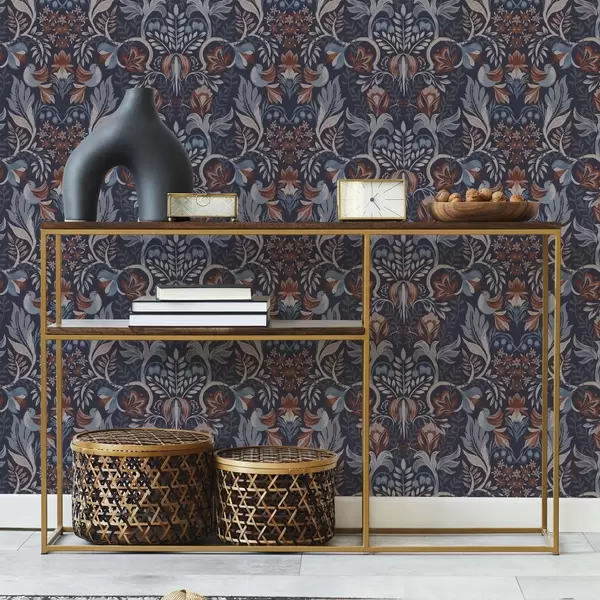 Tapeet Rahva lilled ja linnud tumesinisel taustal a00502