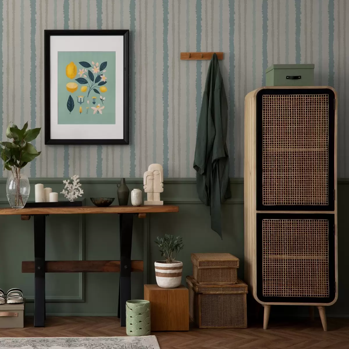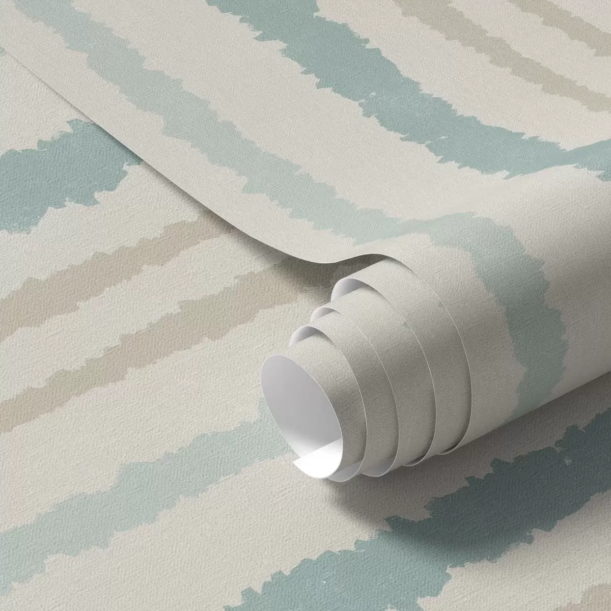 Tapeet Türkiissinised-beežid triibud käsitsi maalitud efektiga Nr. a00510v1
