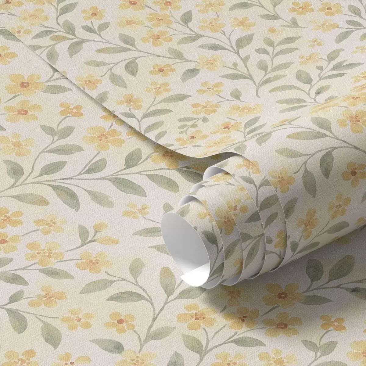 Tapeet Vesivärviga maalitud kollased lilled heledal taustal a00570