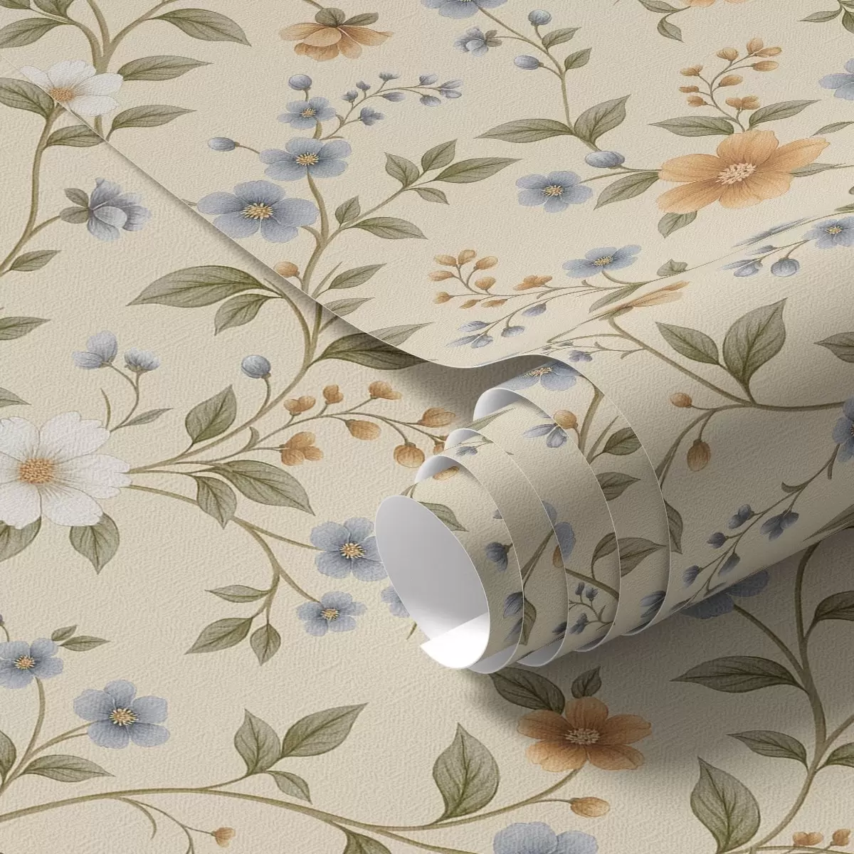 Tapeet Lillelised oksad siniste ja virsikuõitega Nr. a00575