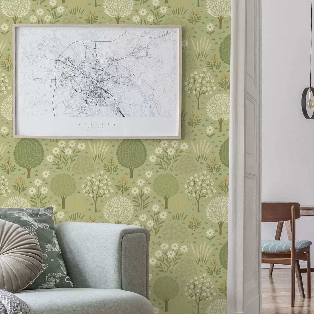 Tapeet Laste roheline aed: puud, lilled ja nisu Nr. a00586