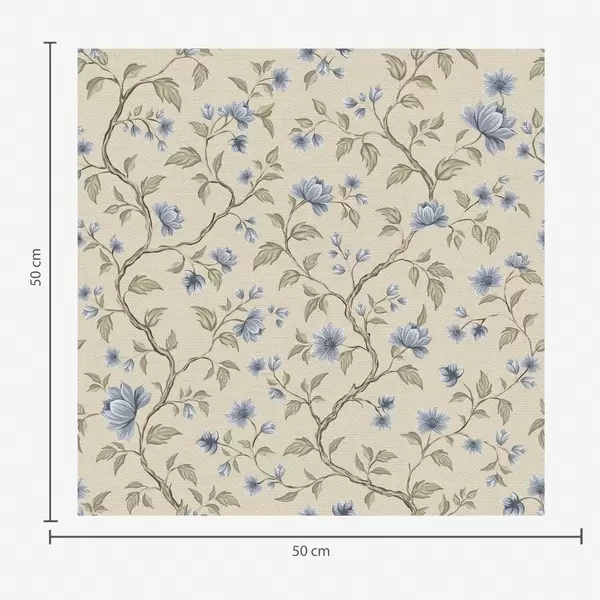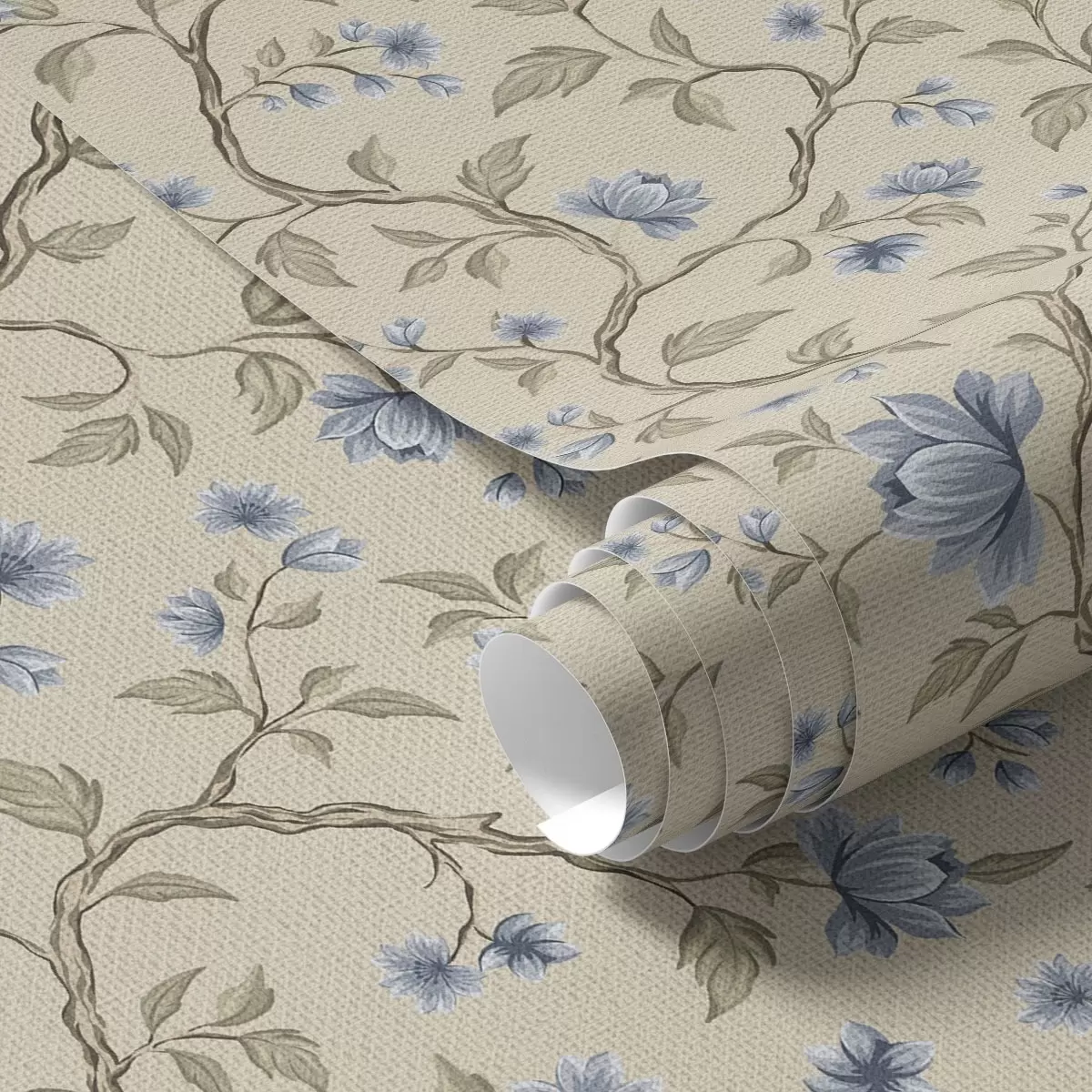 Tapeet Sinised õitsevad oksad linane beež taustal Nr. a00590