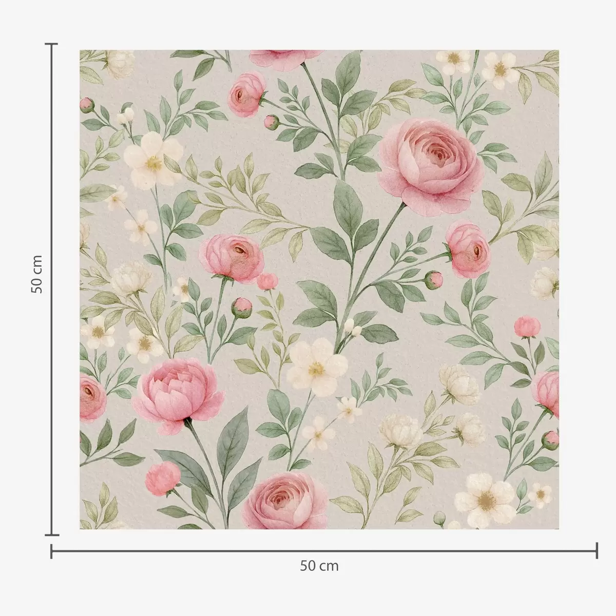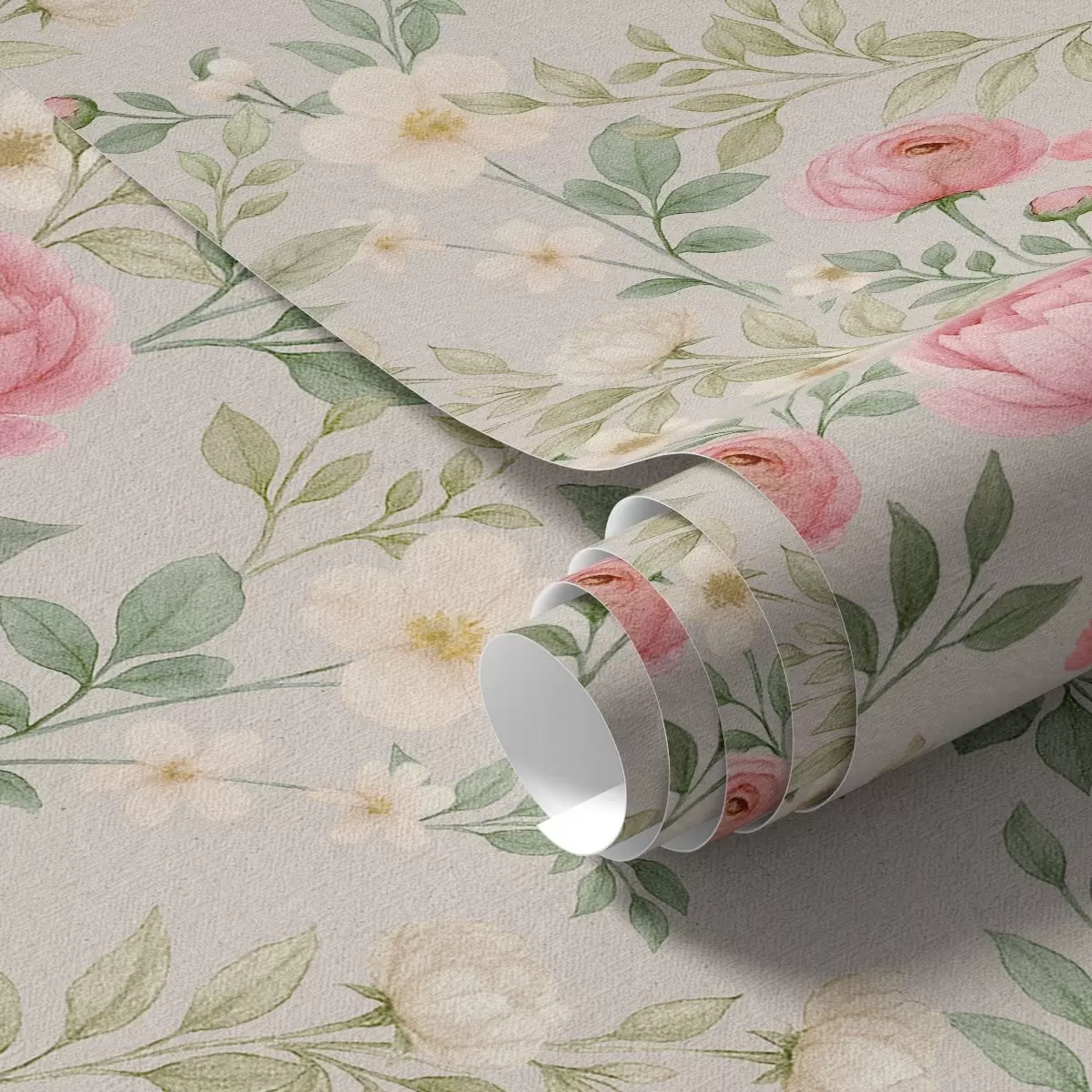 Tapeet Akvarellpioonid ja valged lilled hallikaspruunil taustal Nr. a00592