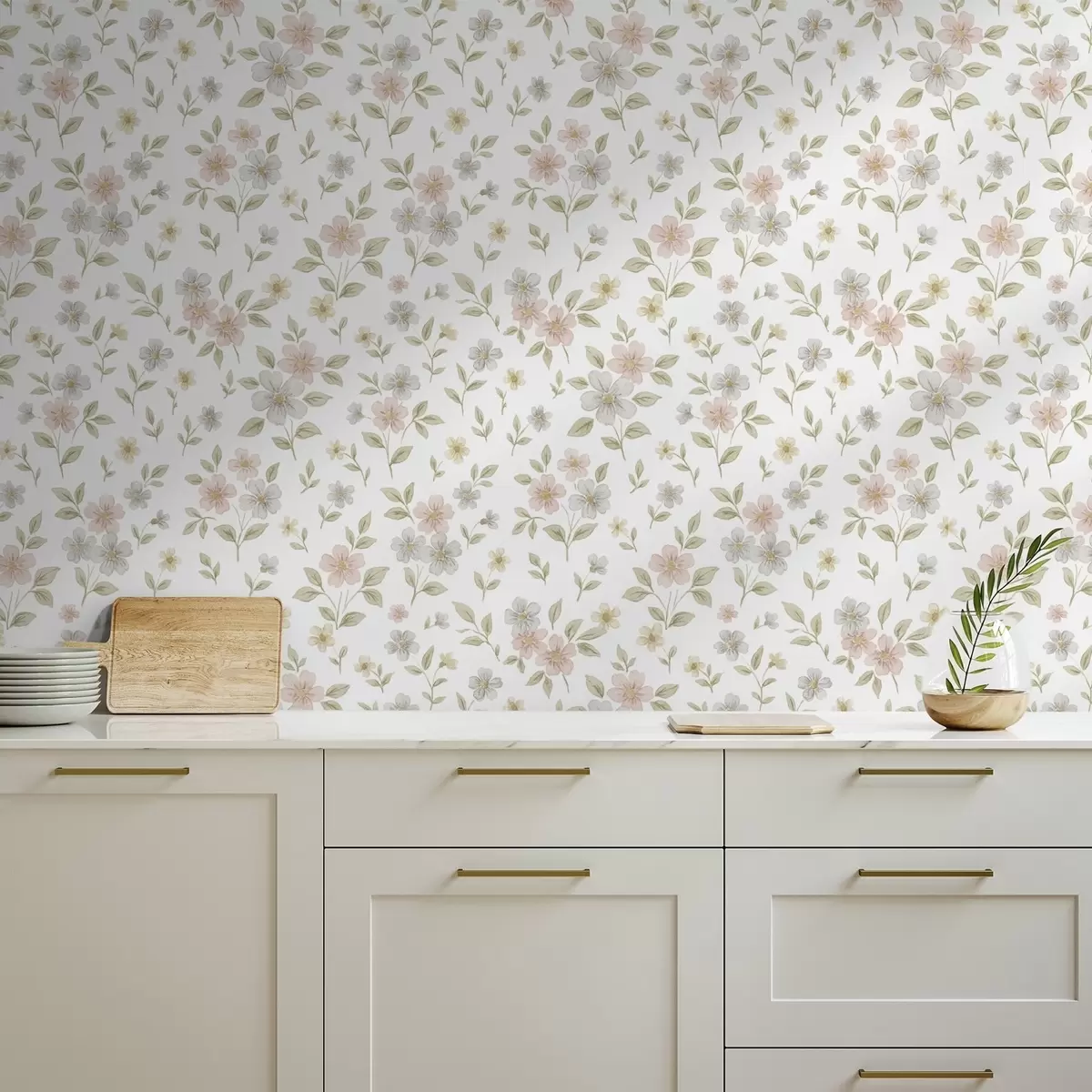 Tapeet Väikesed pastelltoonides akvarelllilled valgel taustal Nr. a00596v1