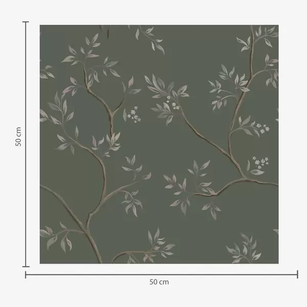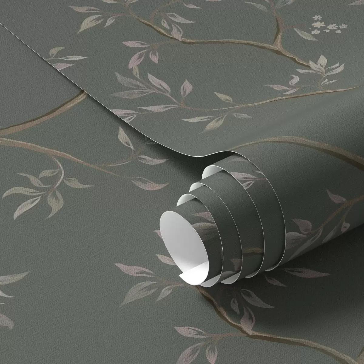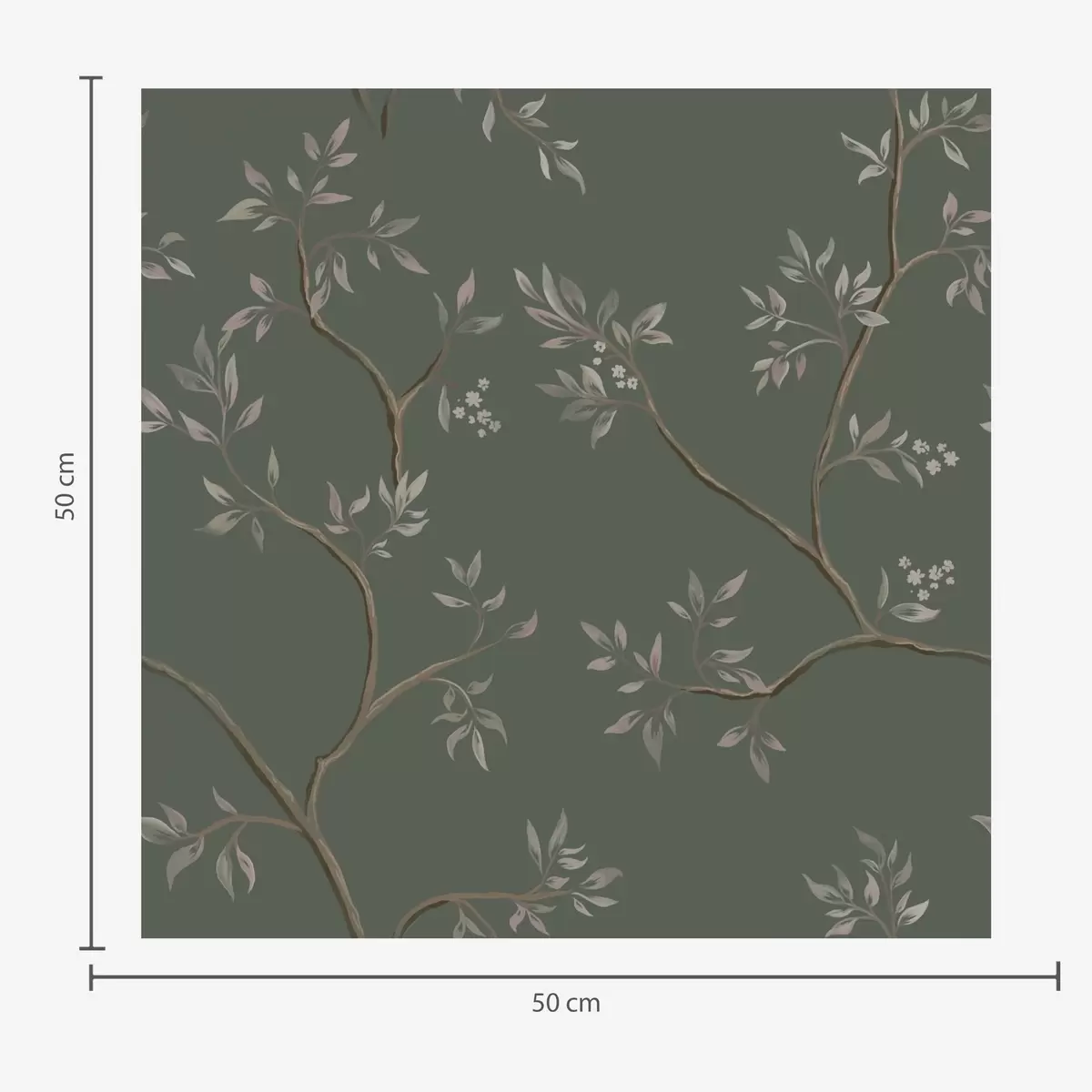 Tapeet Õrnad lehtedega oksad tumerohelisel taustal Nr. a00597