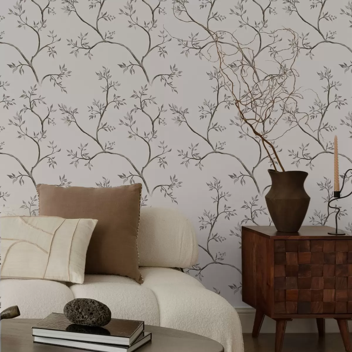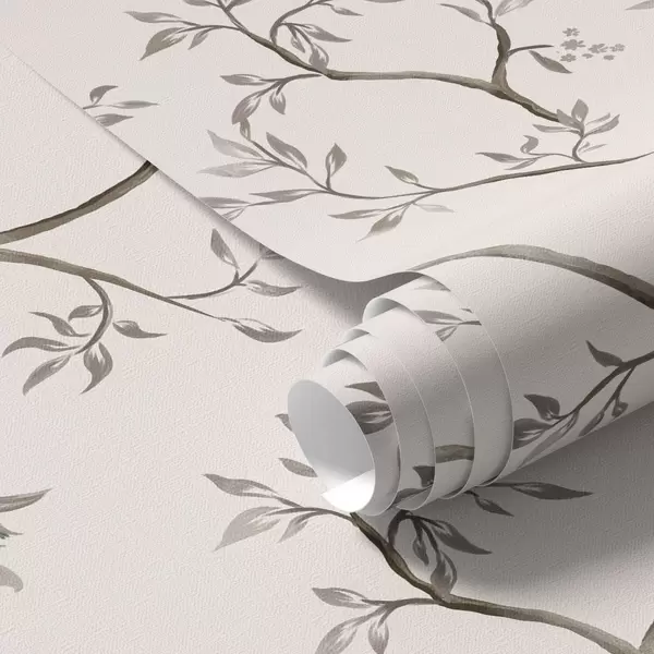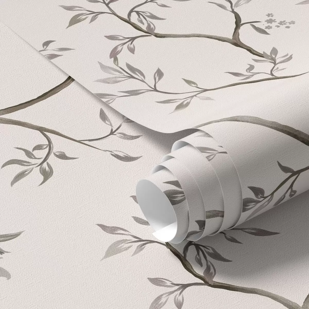 Tapeet Õrnad lehtedega oksad soojal kreemikal taustal Nr. a00597v1