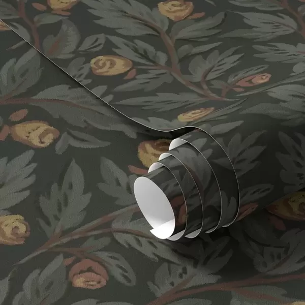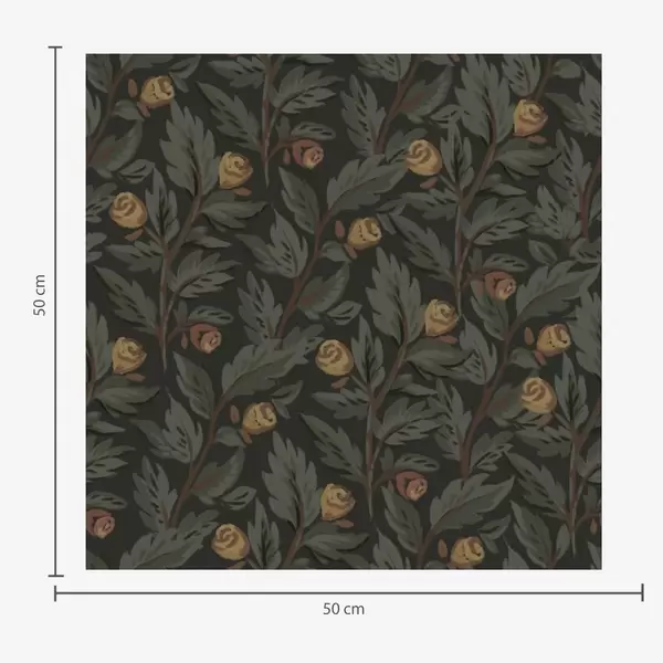 Tapeet Tume lillemustriga, kollaste pungade ja lehtedega Nr. a00598