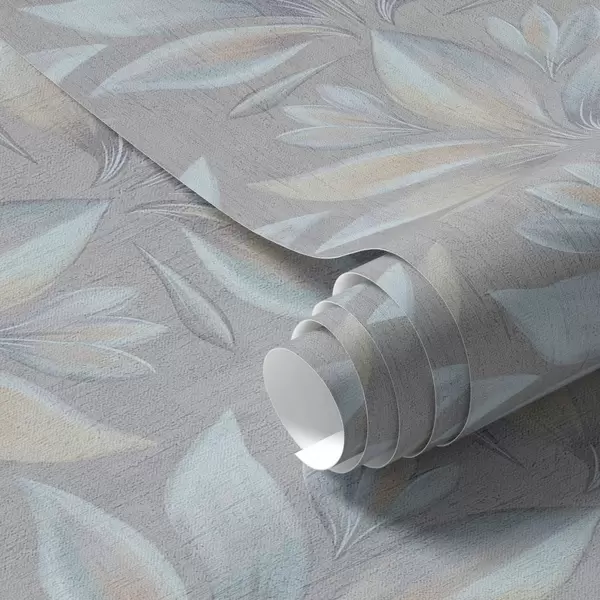 Tapeet Suured stiliseeritud lehed sinise-liivase värvipaleti ja halli taustaga Nr. a00601