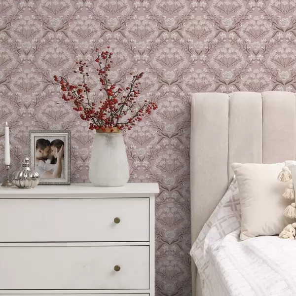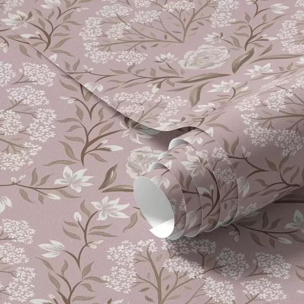 Tapeet Roosa damask: peonid, lumikellukesed ja pitsilised klastrid Nr. a00603