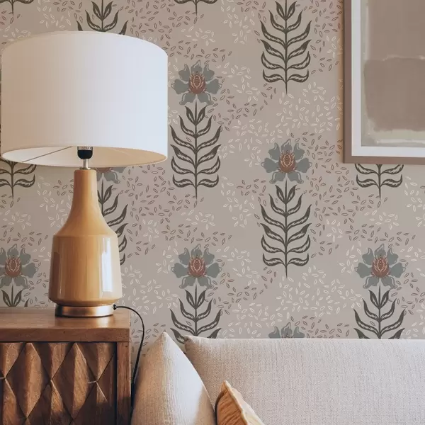 Tapeet Stiilseid lilli ja seemneid soojal beežil Nr. a00604