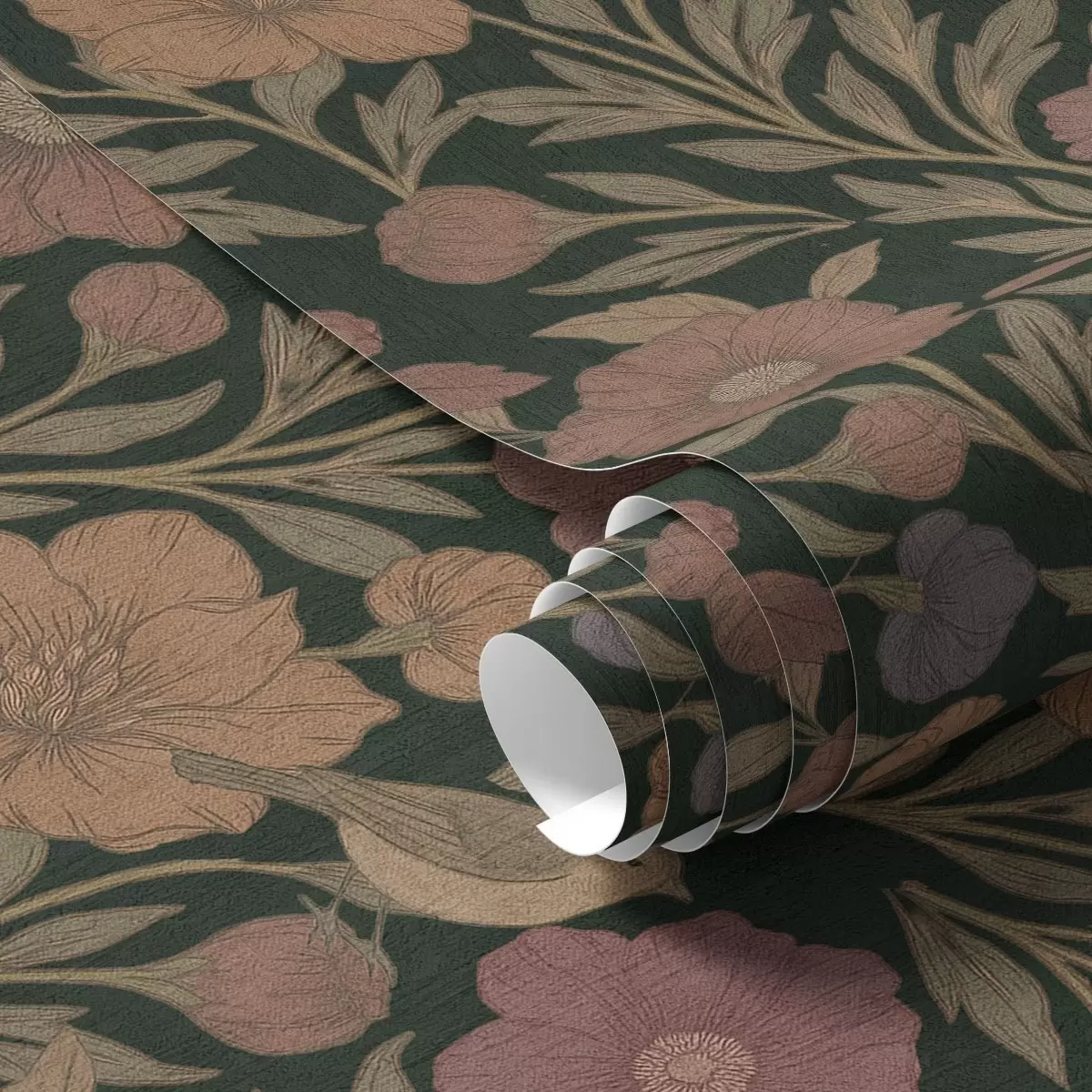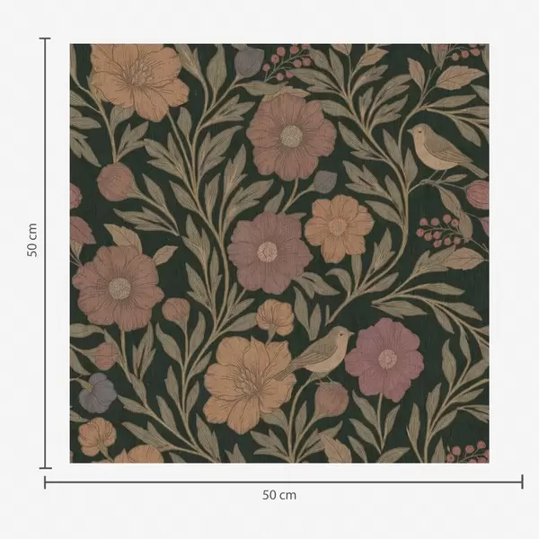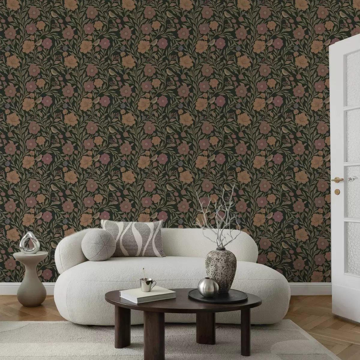 Tapeet Sügisene lilled ja linnud sügaval smaragdrohelisel taustal Nr. a00605v1