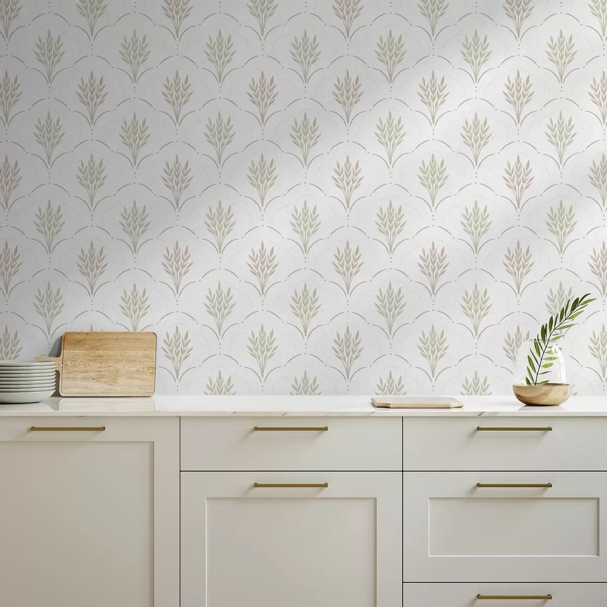 Tapeet Nisu kaare kujulises ornamentis, pehmed pastellid valgel taustal Nr. a00607v1