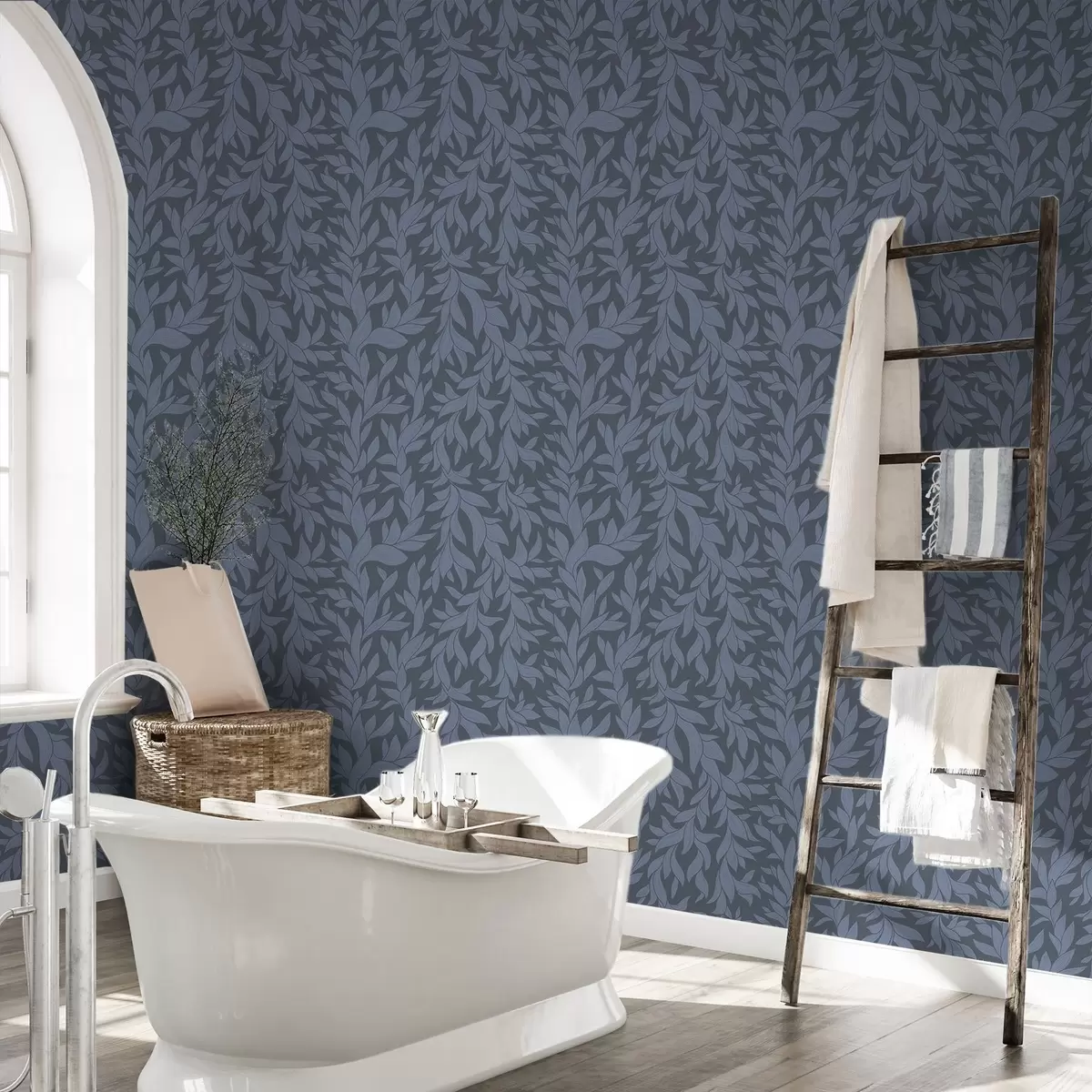 Tapeet Grafiitsinine taust ja sinised lehed, tekstuuriga joon Nr. a00616v2