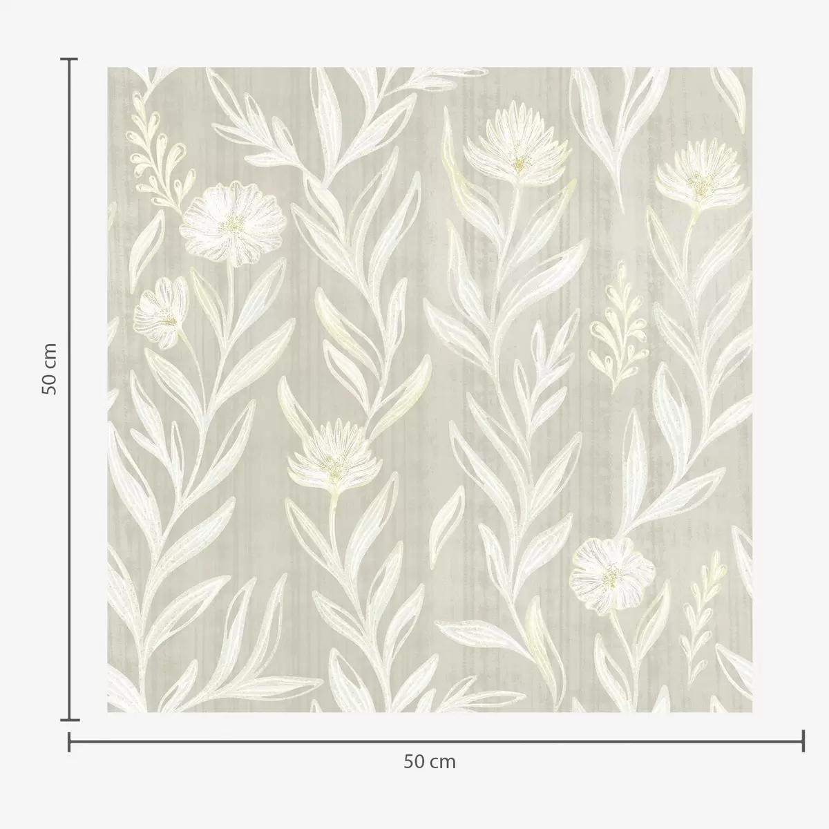 Tapeet Hele rohi ja lilled beežil taustal, skitsilised jooned a00618