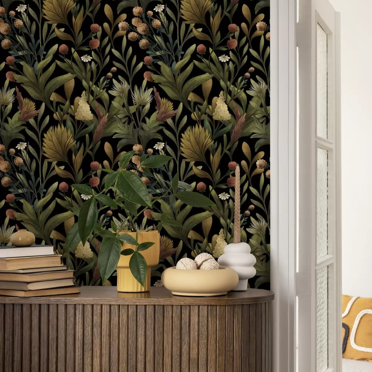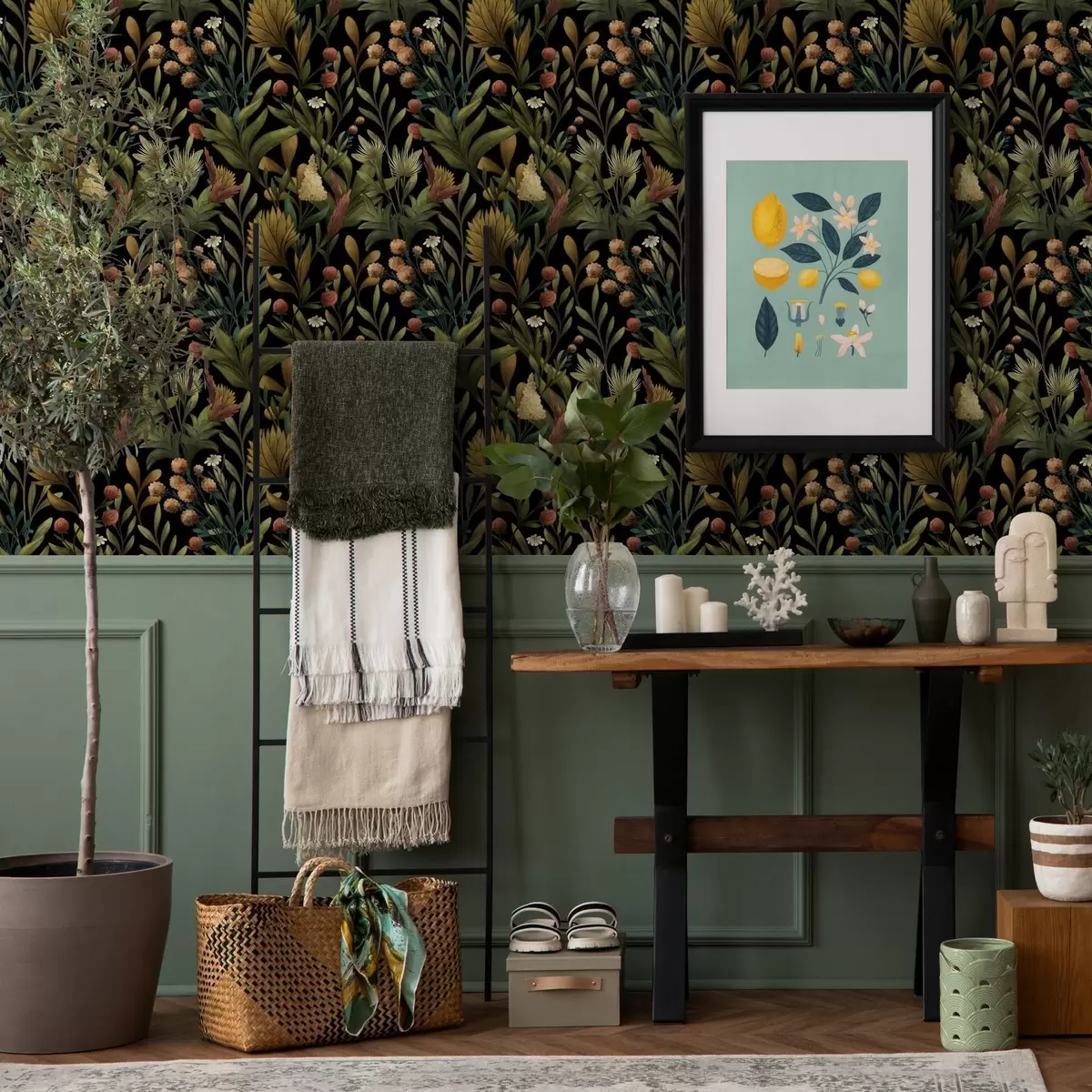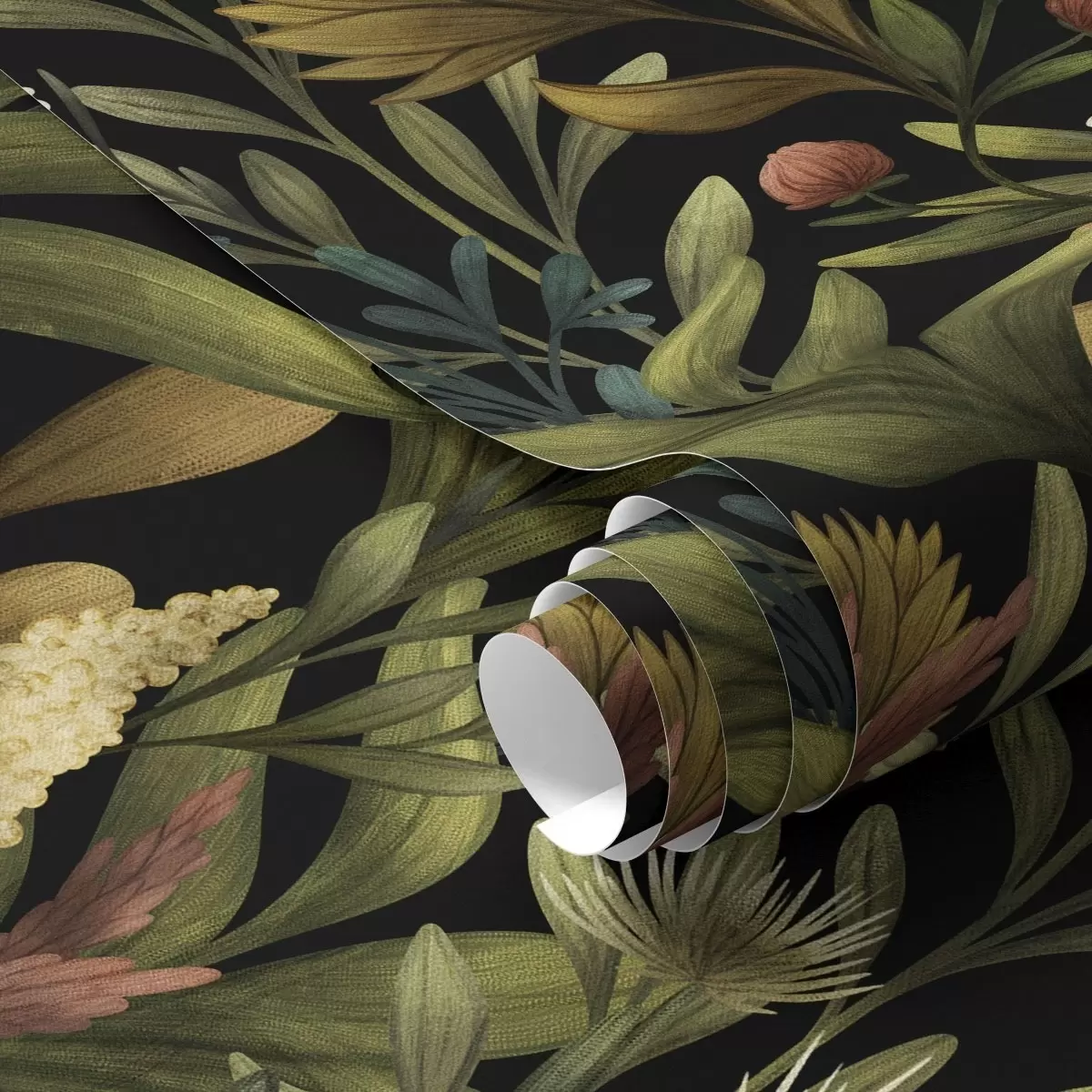 Tapeet Botaanikaaed mustal taustal, soe sügisene värvipalett Nr. a00619