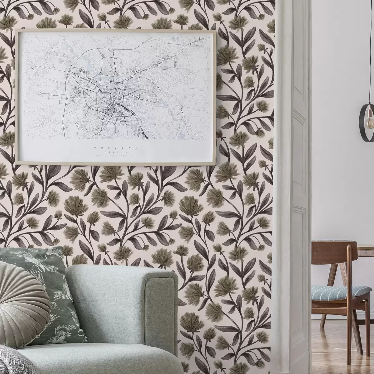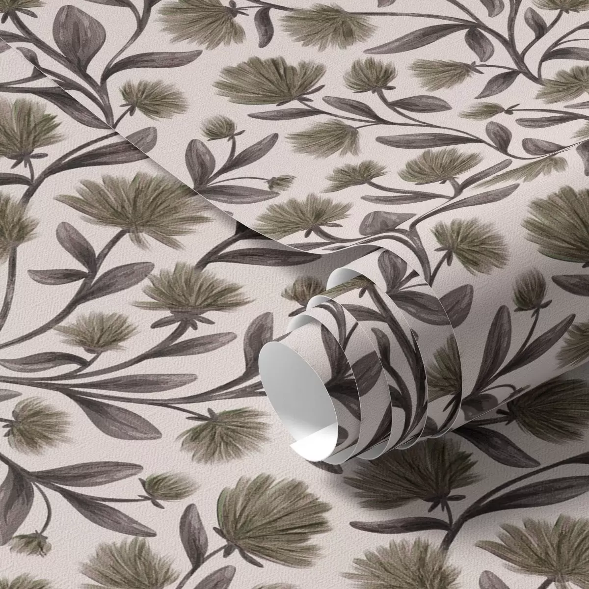 Tapeet Kreemjas taustal hallikaspruunid looduslilled Nr. a00623v1