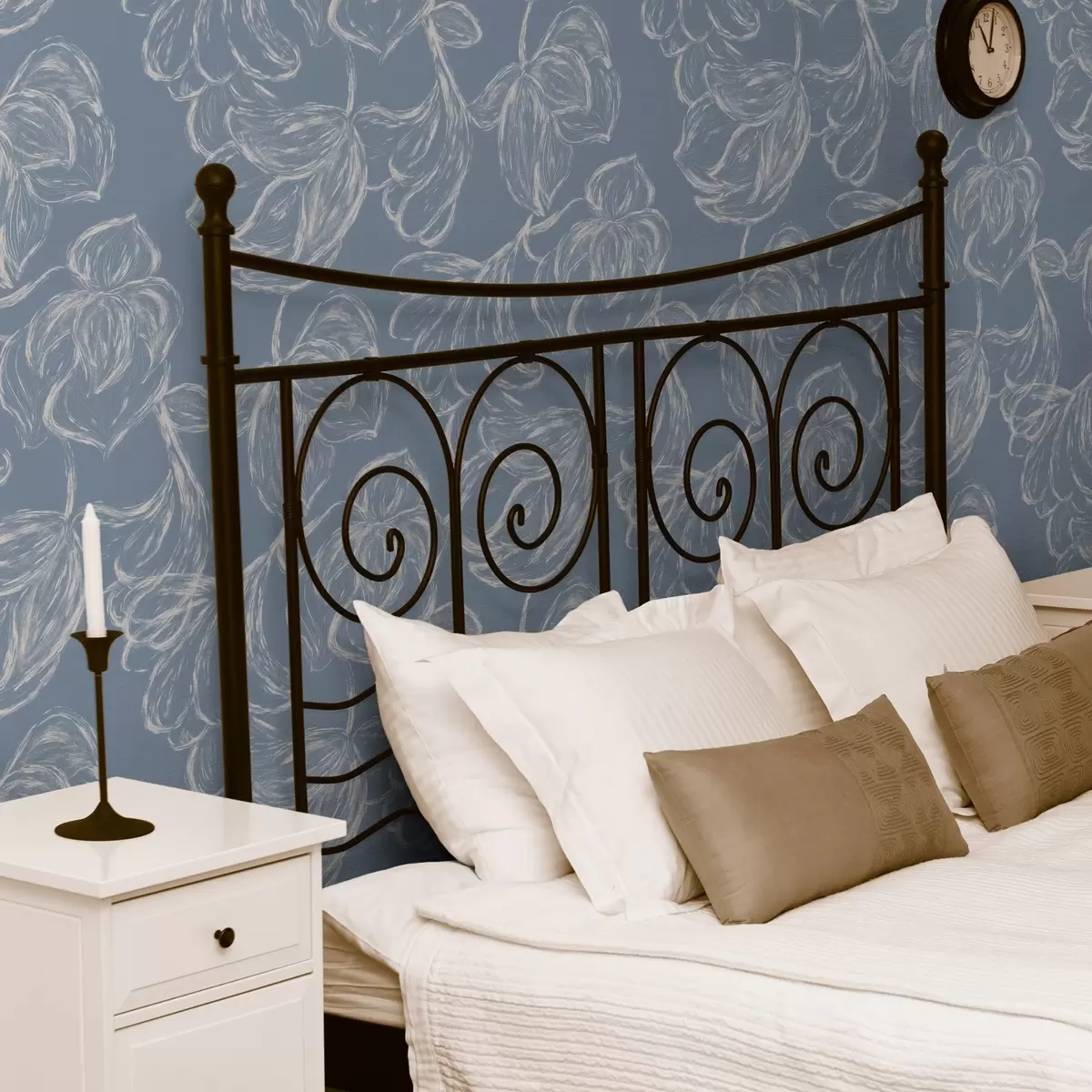 Tapeet Helesinine taust kriitja kontuuriga lilled Nr. a00625v3
