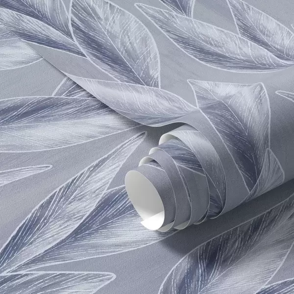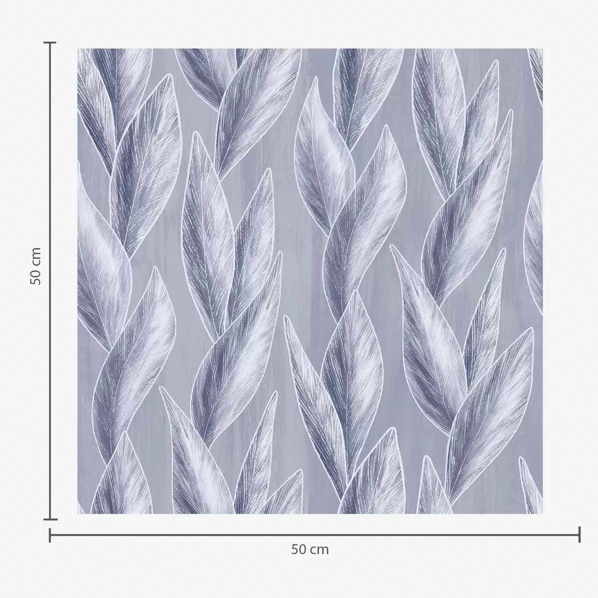 Tapeet Hõbedasekirjud lehed hallikassinisel taustal, graafiline muster Nr. a00627