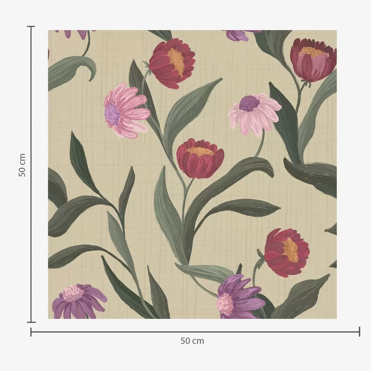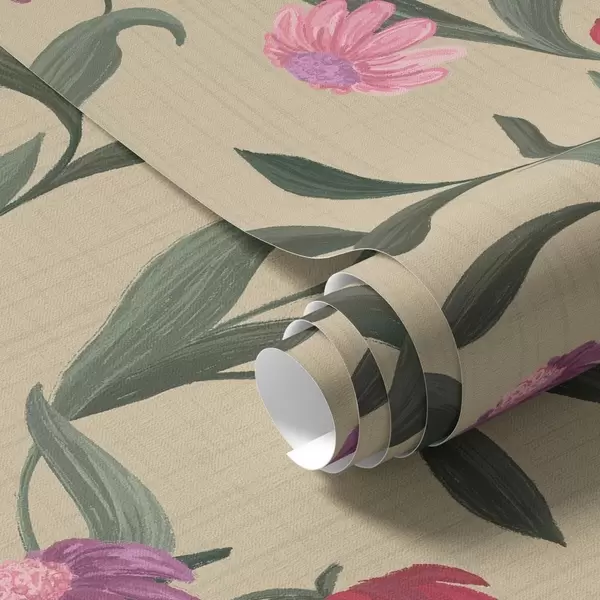 Tapeet Roosa-punased lilled beežil taustal, käsitsi joonistatud tekstuur Nr. a00631