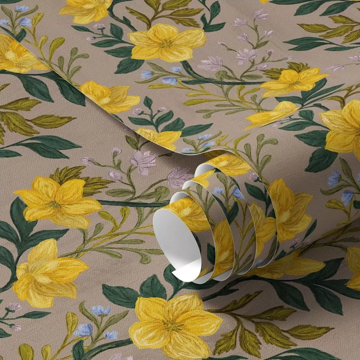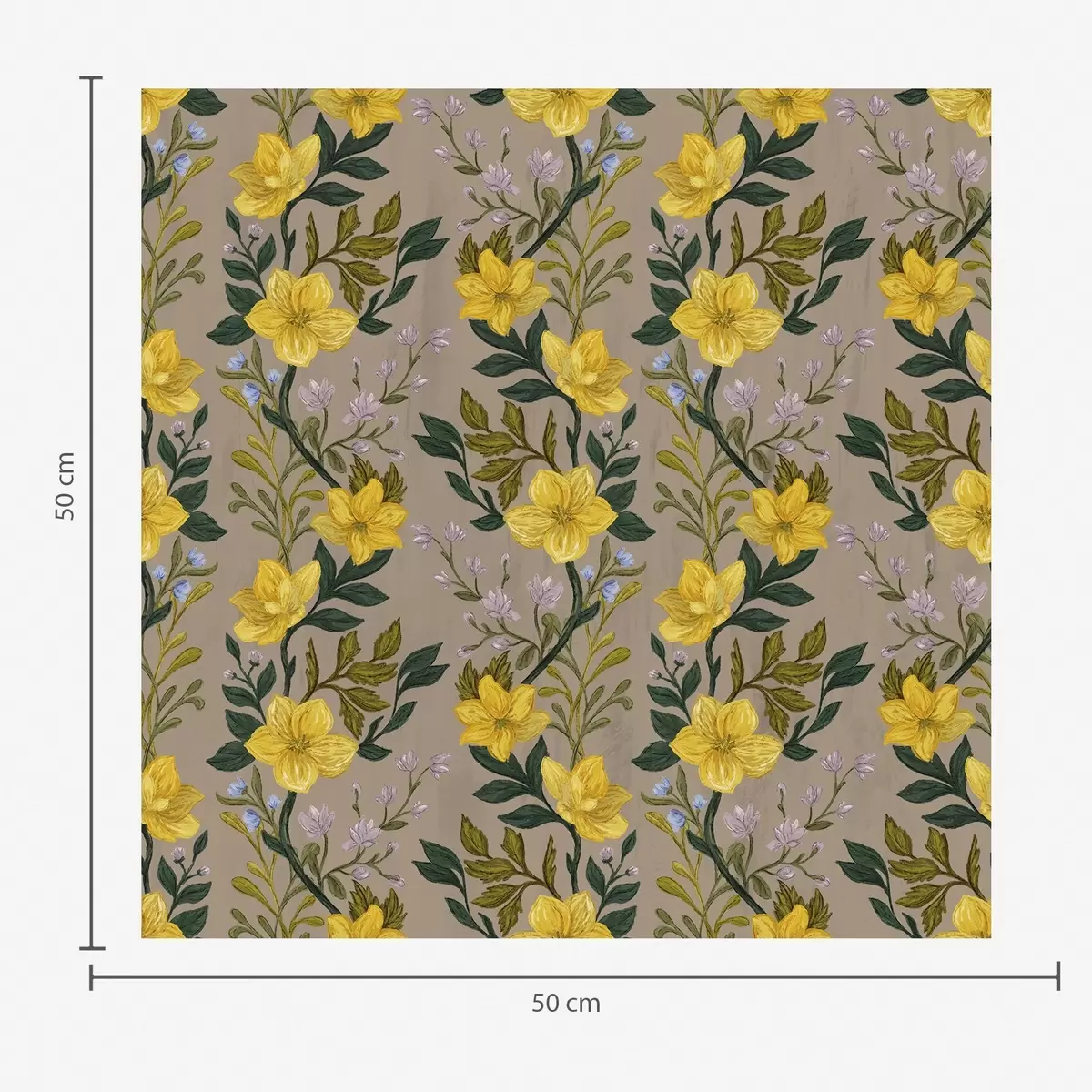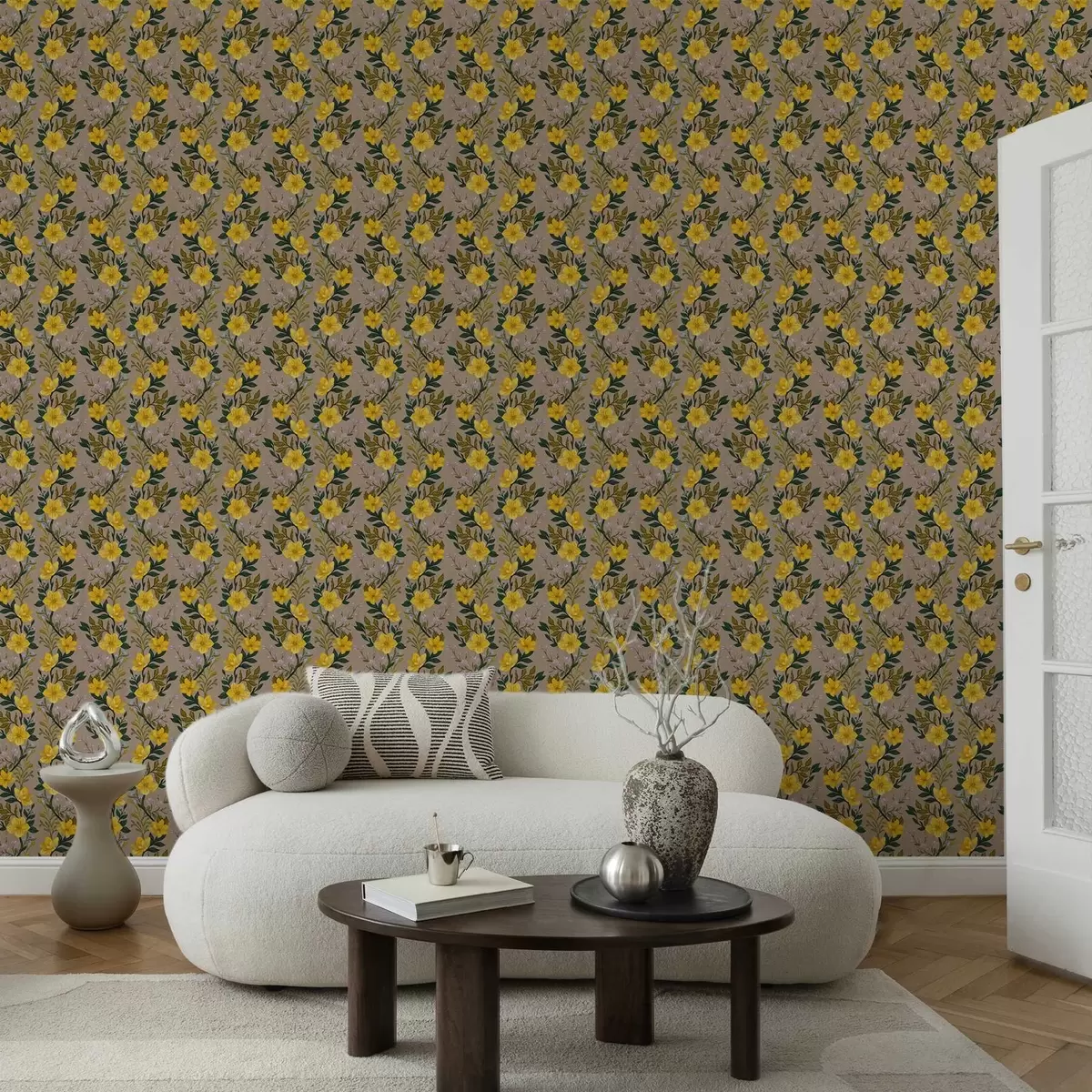 Tapeet Kollased lilled vertikaalsetes girlandites hallikaspruuni taustal Nr. a00632v1