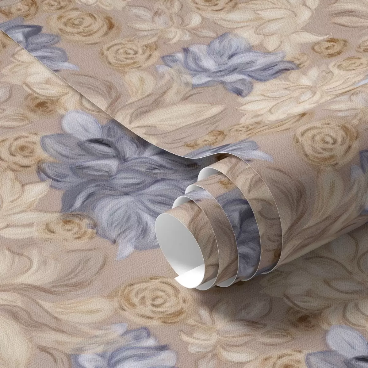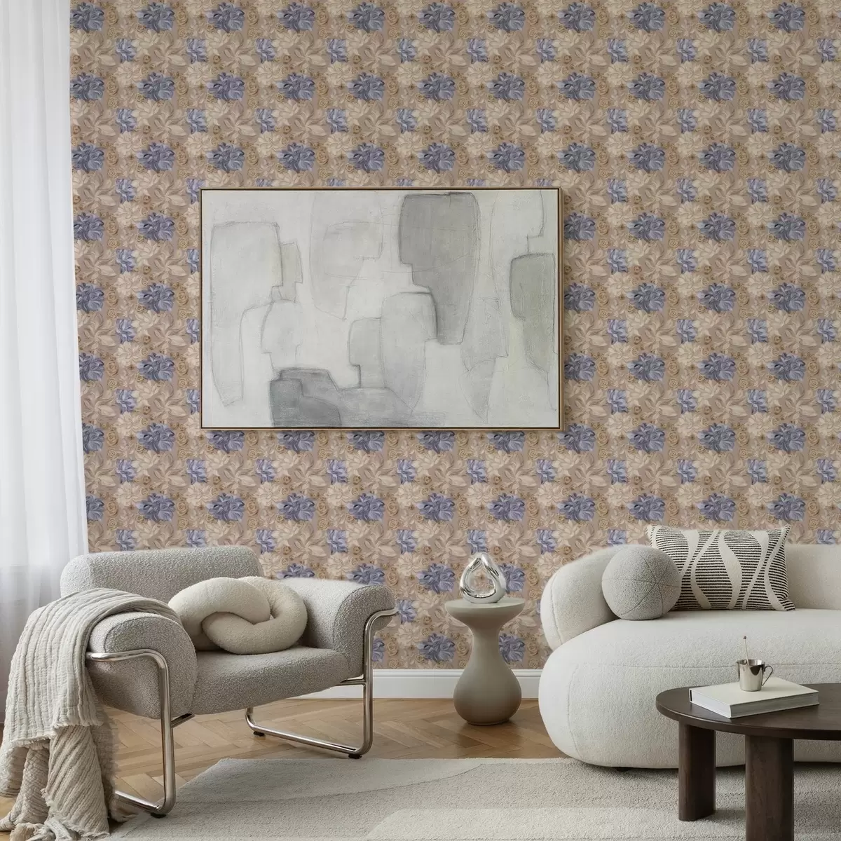 Tapeet Lopsakas kreem ja sinised lilled pastelltoonides Nr. a00634