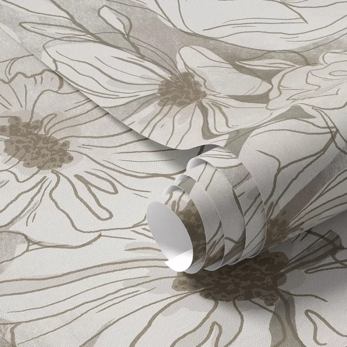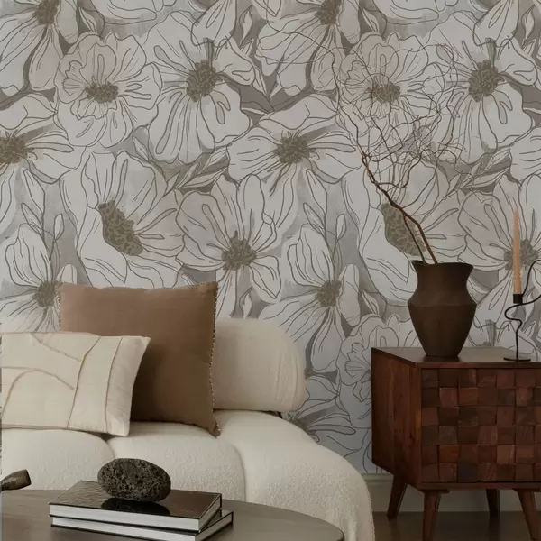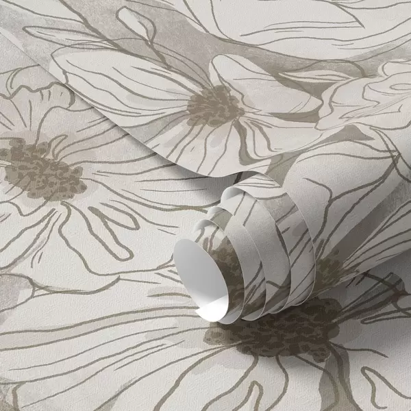 Tapeet Lineaarse kujuga lilled monokroomses beež-halli värvipalettis Nr. a00636