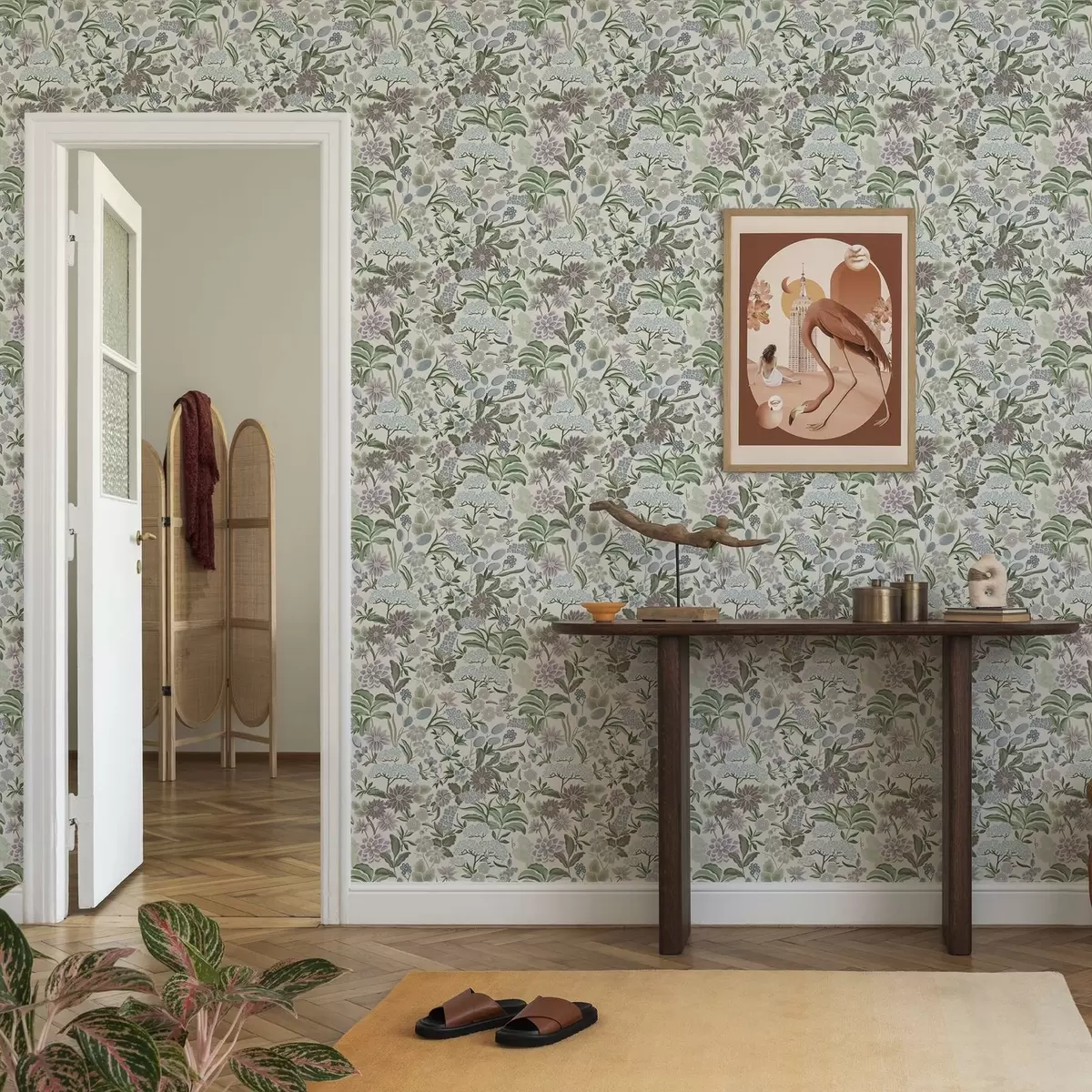 Tapeet Pastelltoonides lilled ja lehed mintsinises värvipalettis Nr. a00642