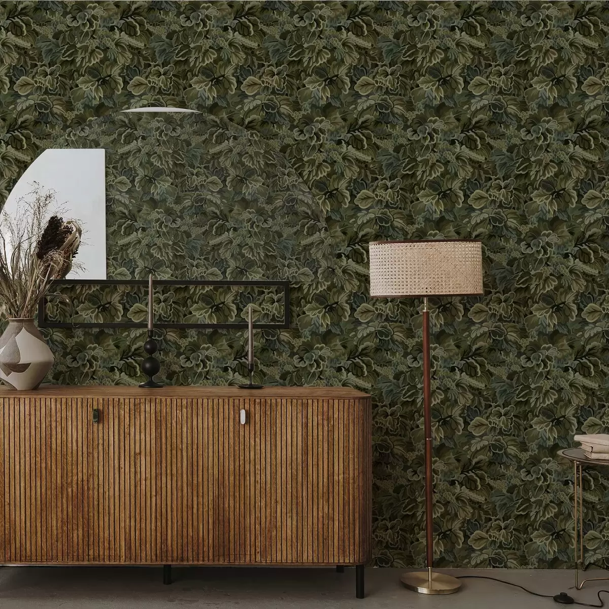 Tapeet Tihedad viinamarjalehed sügavrohelises värvipalettis Nr. a00647