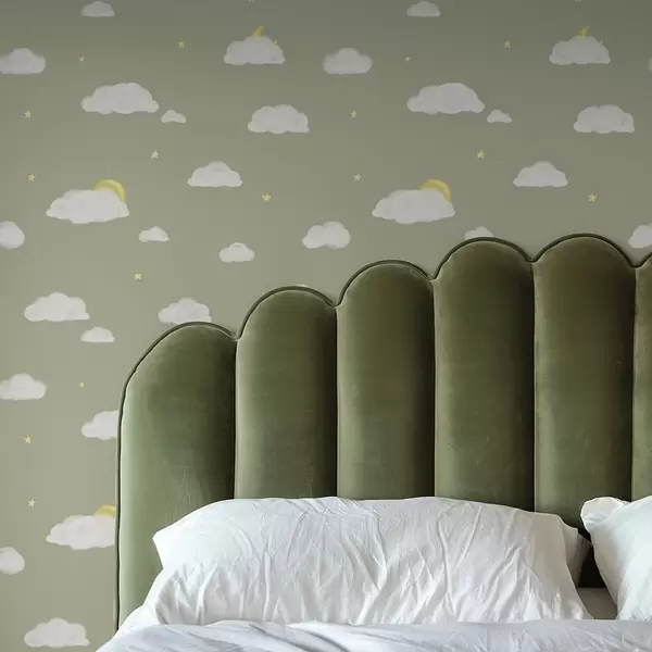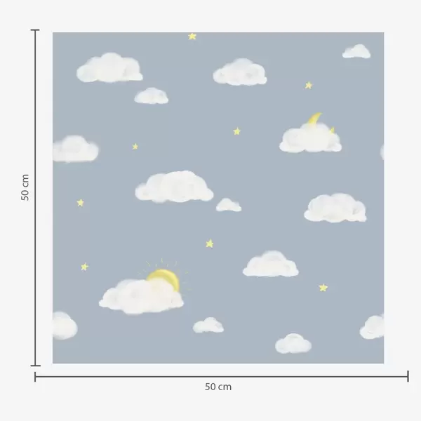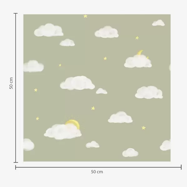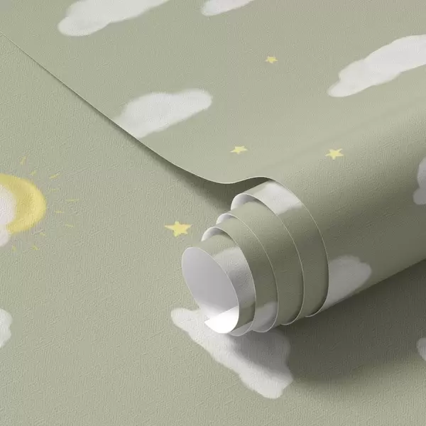 Tapeet Pehmed pilved, tähed ja päike rohekashalli taustal Nr. a00652v1