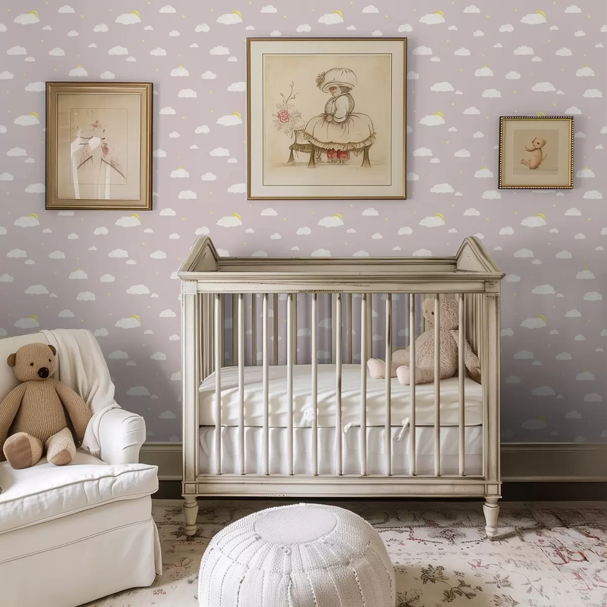 Tapeet Pehmed pilved, tähed ja päike roosakashallil taustal Nr. a00652v2