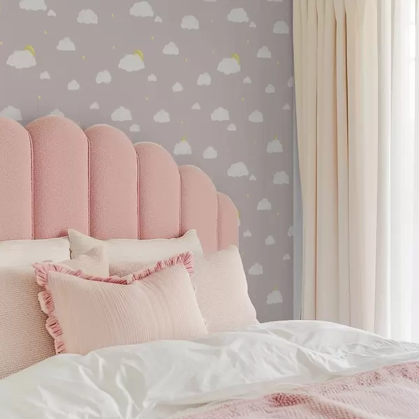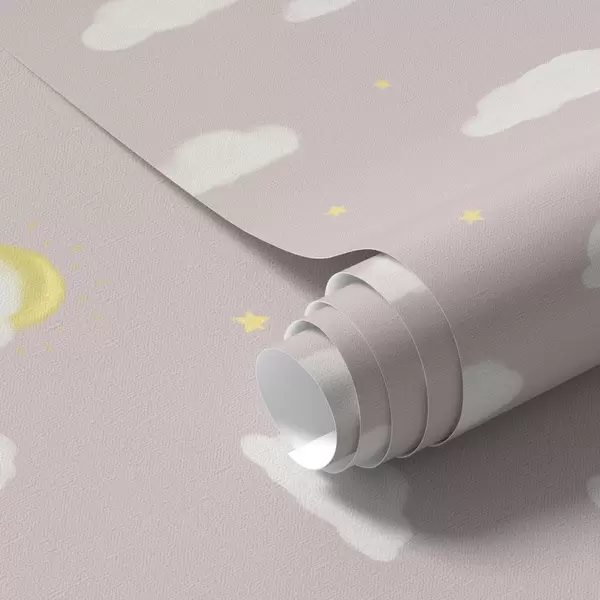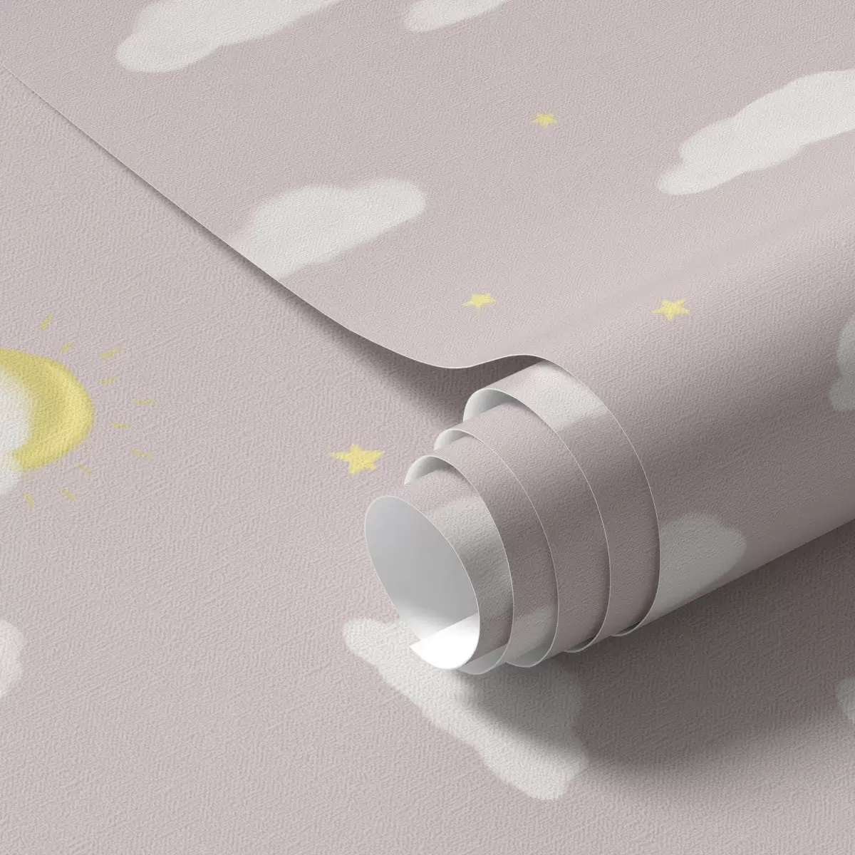 Tapeet Pehmed pilved, tähed ja päike roosakashallil taustal Nr. a00652v2