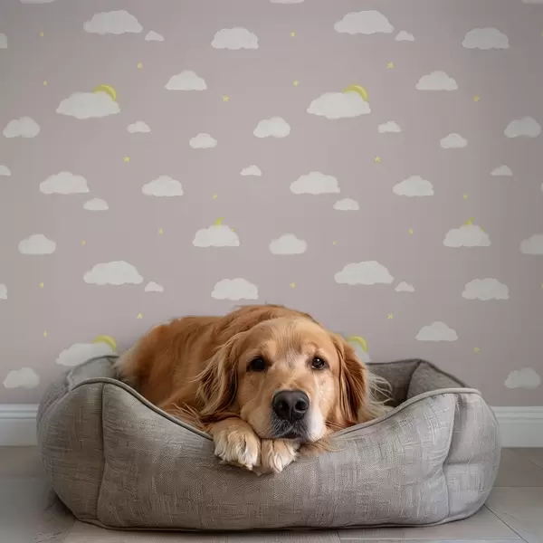 Tapeet Pehmed pilved, tähed ja päike roosakashallil taustal Nr. a00652v2