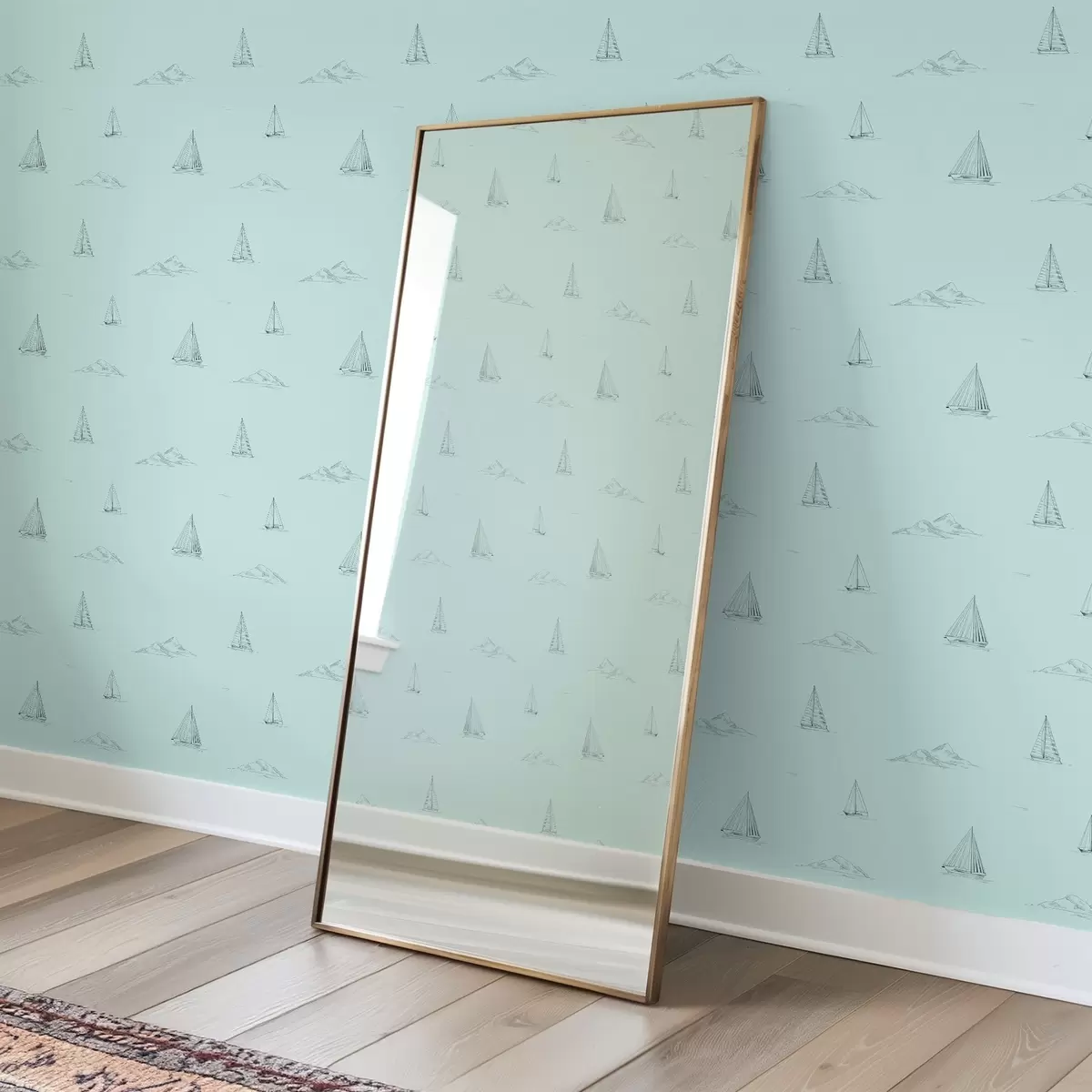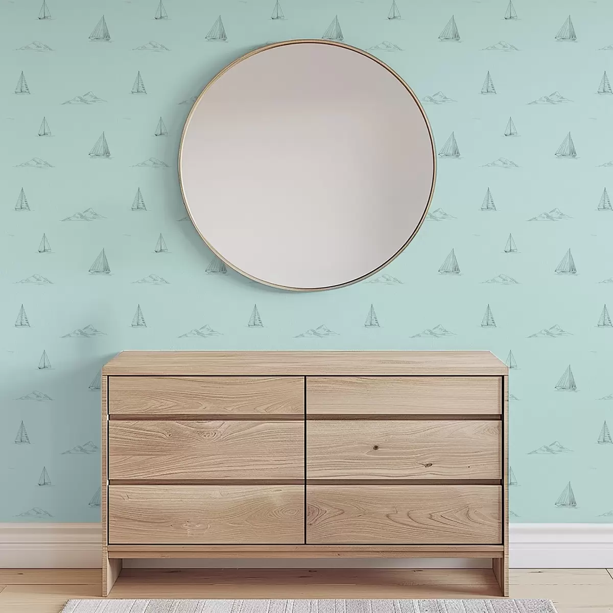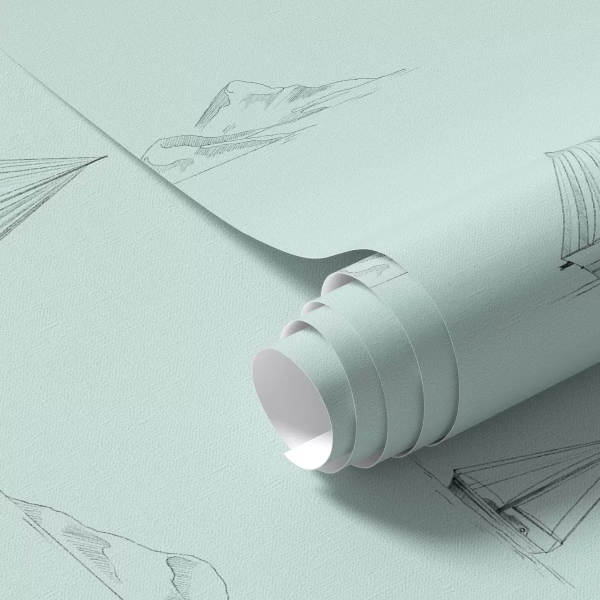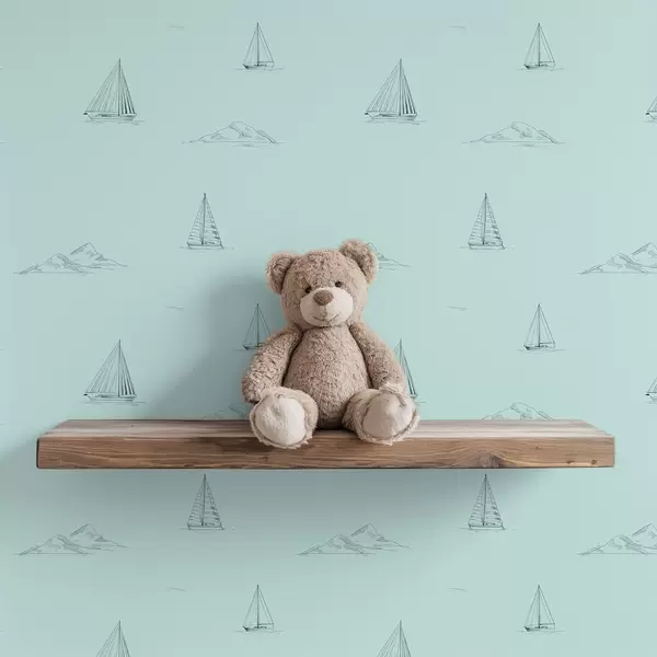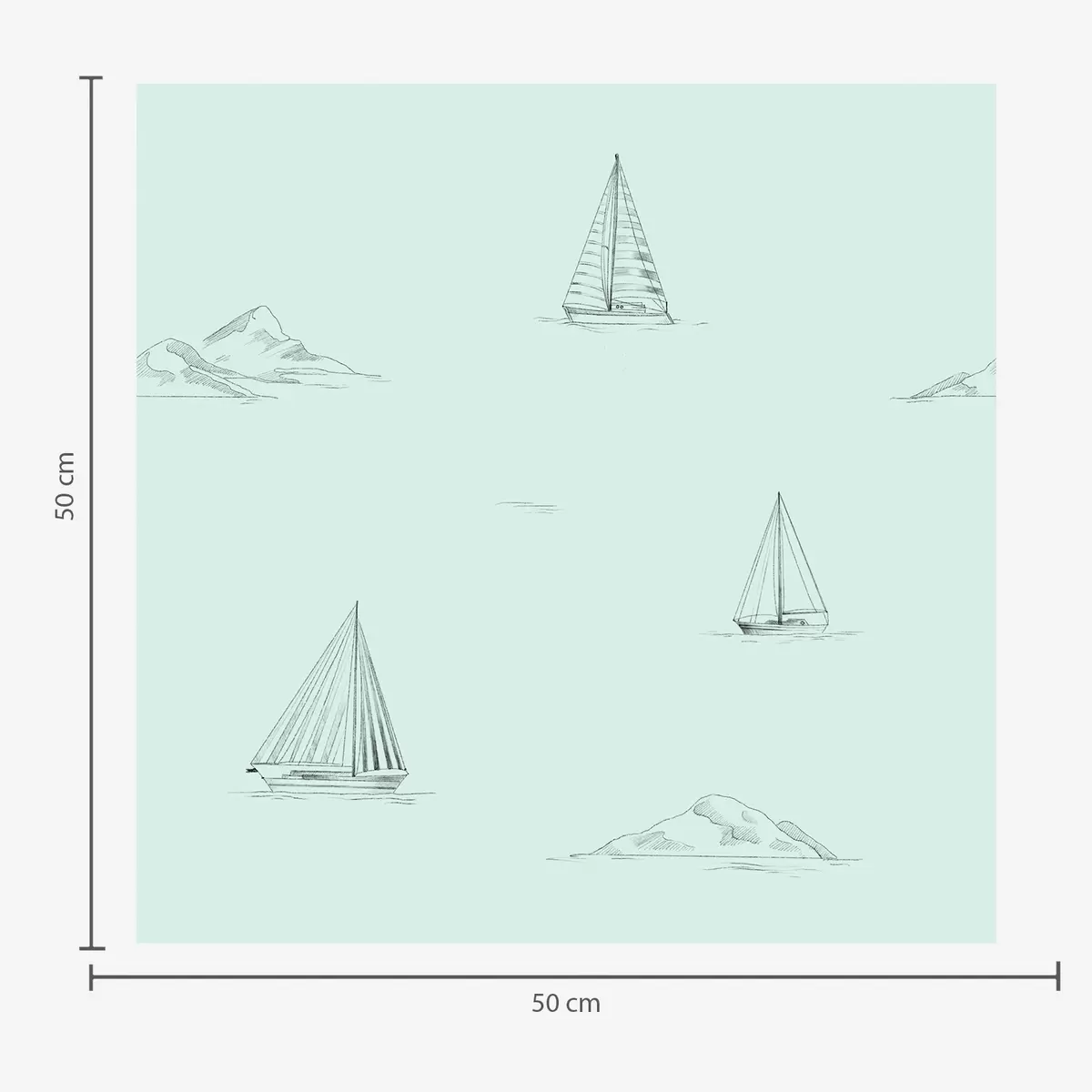 Tapeet Joonistage jahid ja saared, mündirohelisel taustal Nr. a00654v4