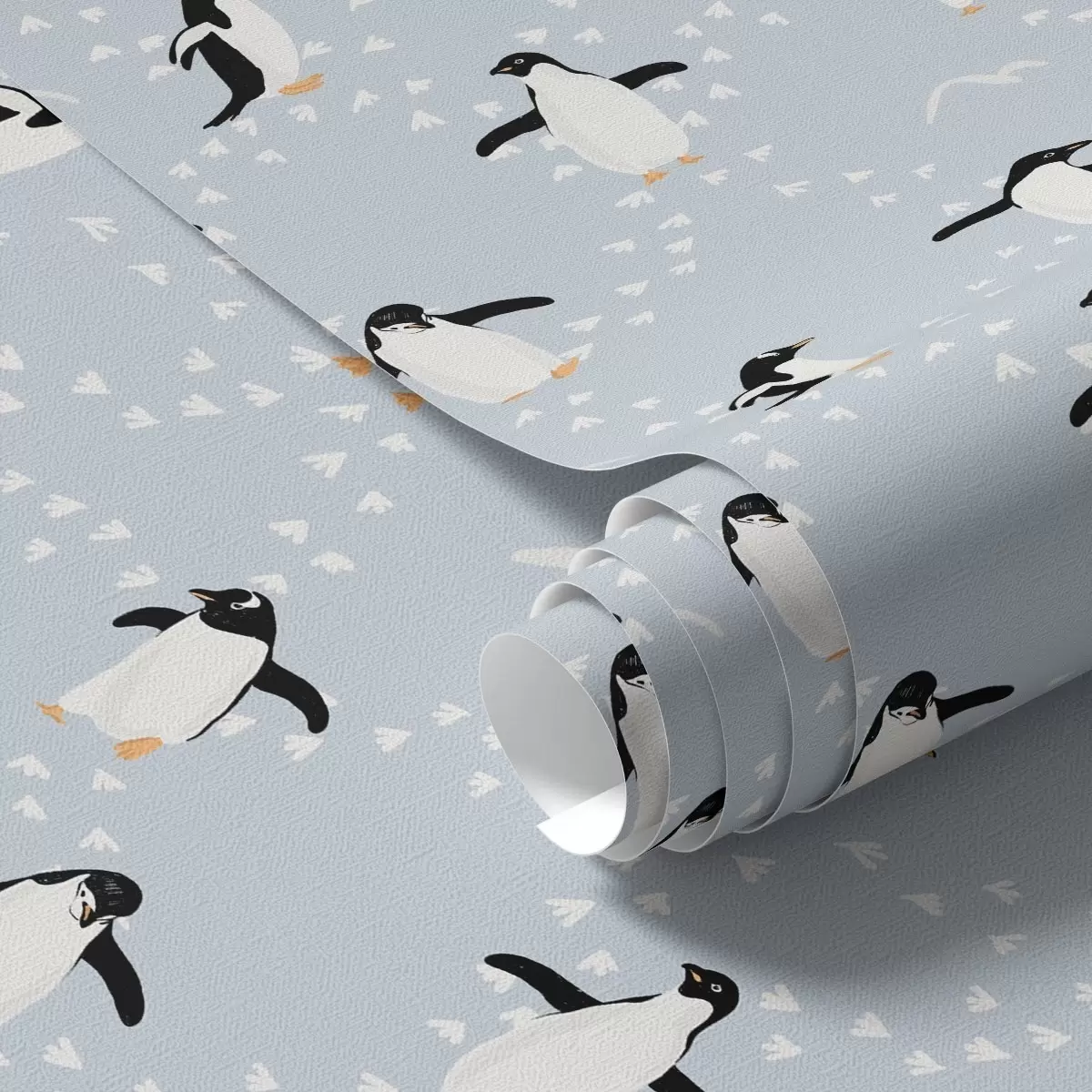 Tapeet Pingviinid helesinisel taustal, jalajälgede rütm Nr. a00655v2
