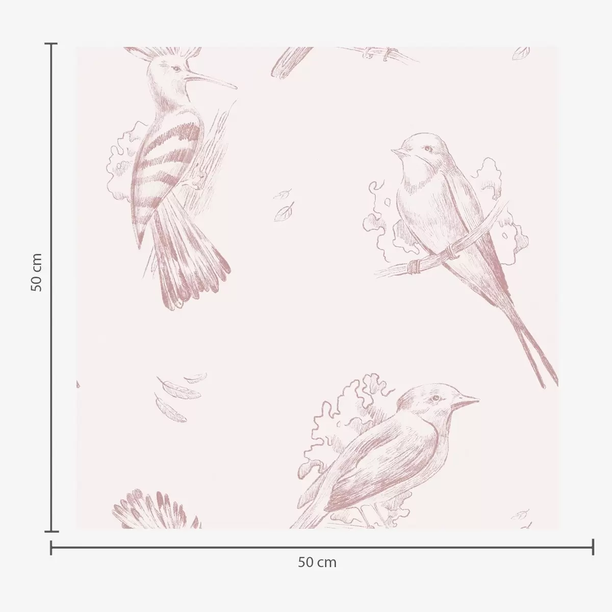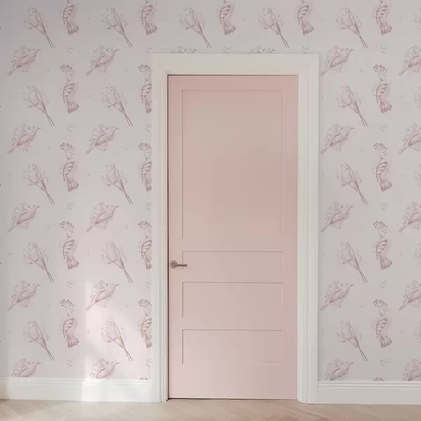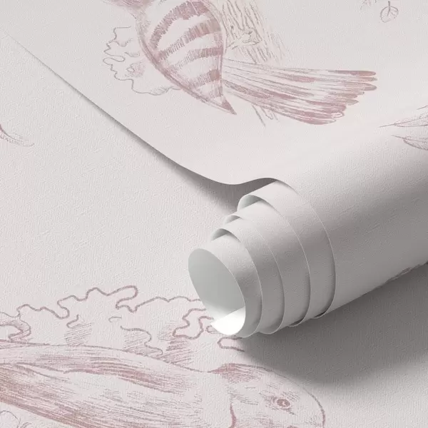 Tapeet Linnutoile: linnukontuurid, õrn roosa taust Nr. a00656