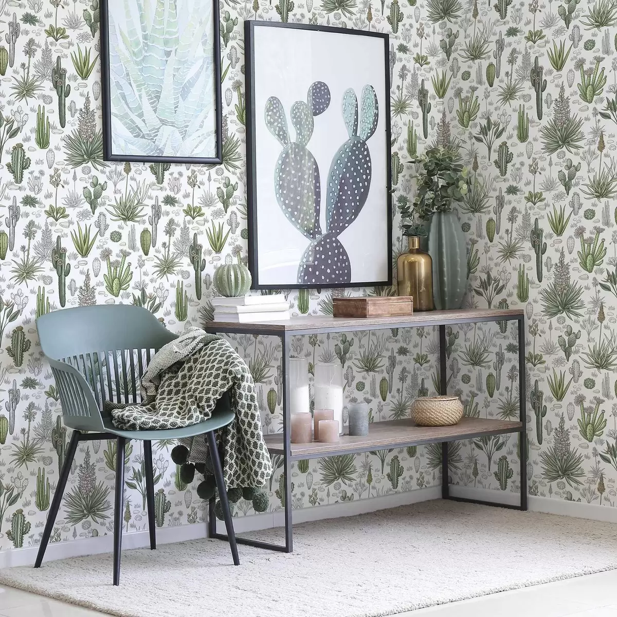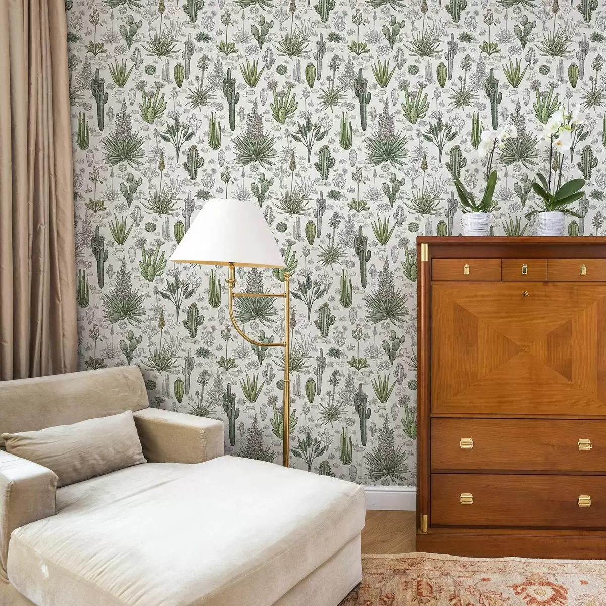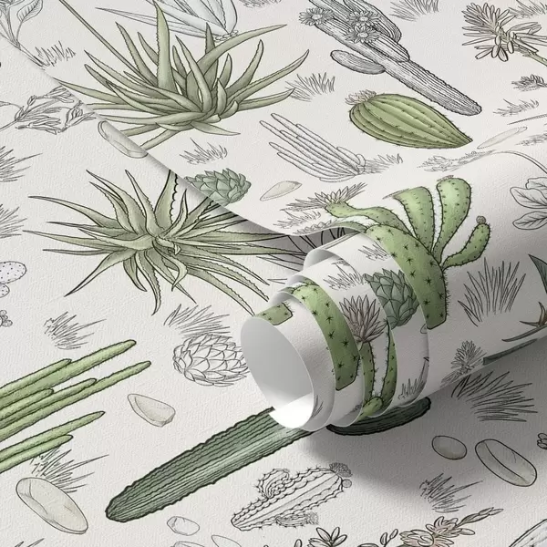 Tapeet Kaktused ja sukkulendid heledal taustal, lineaarne stiil Nr. a00666v1