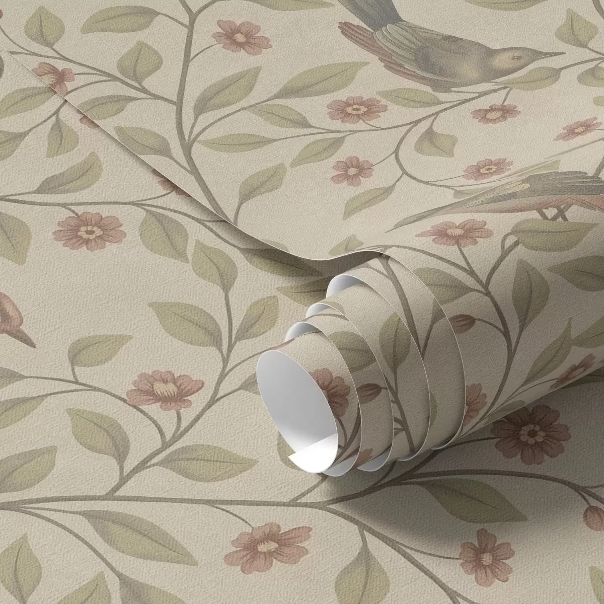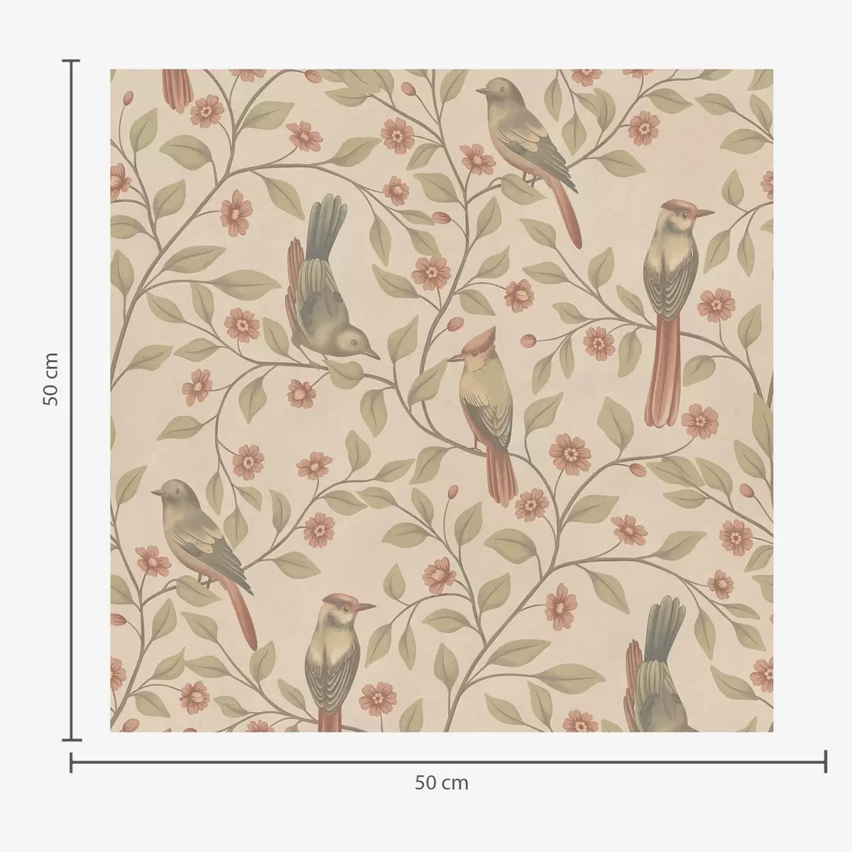 Tapeet Linnud õitsevatel okstel, soe beež taust Nr. a00670