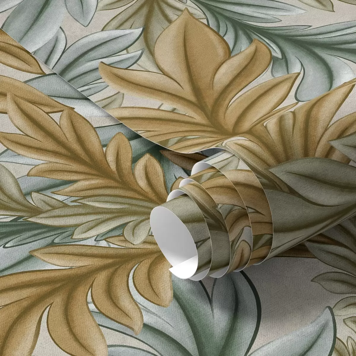 Tapeet Dekoratiivne lehestik soojas okra ja rohelise värvipalettis Nr. a00673