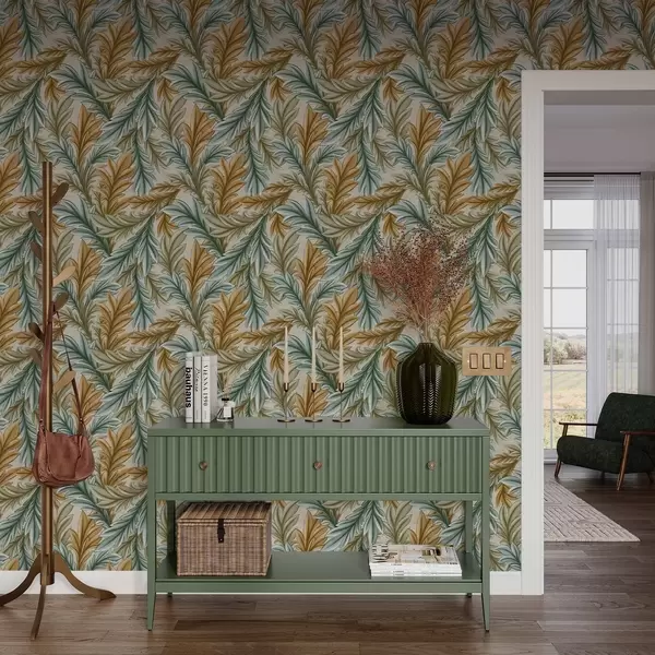 Tapeet Dekoratiivne lehestik soojas okra ja rohelise värvipalettis Nr. a00673