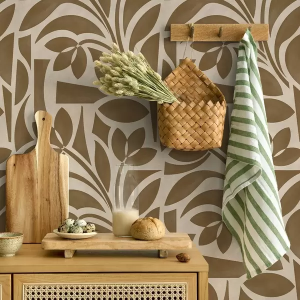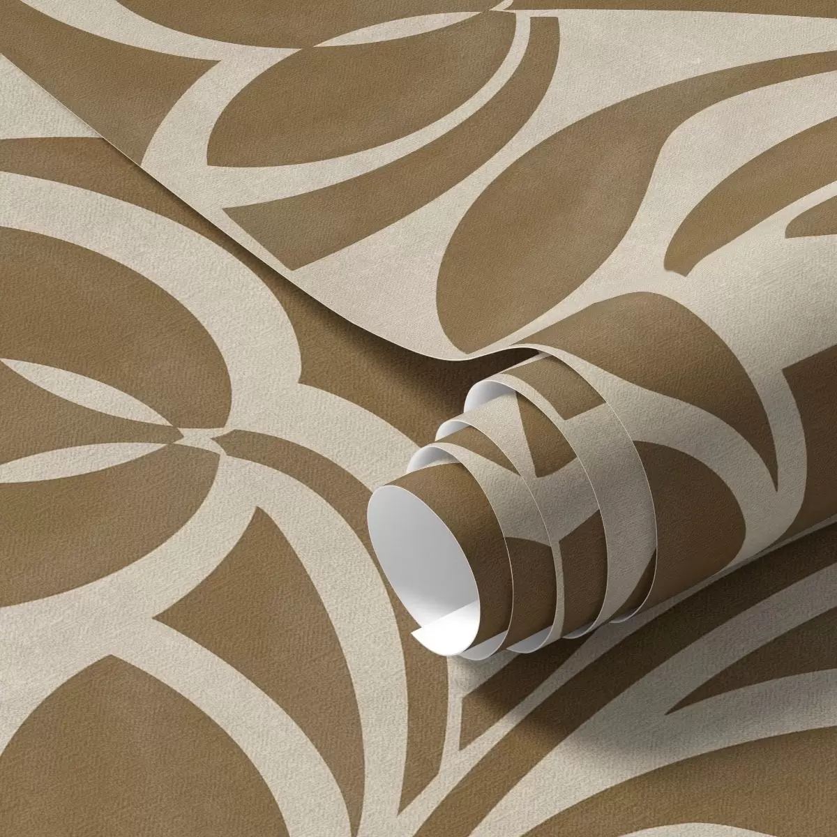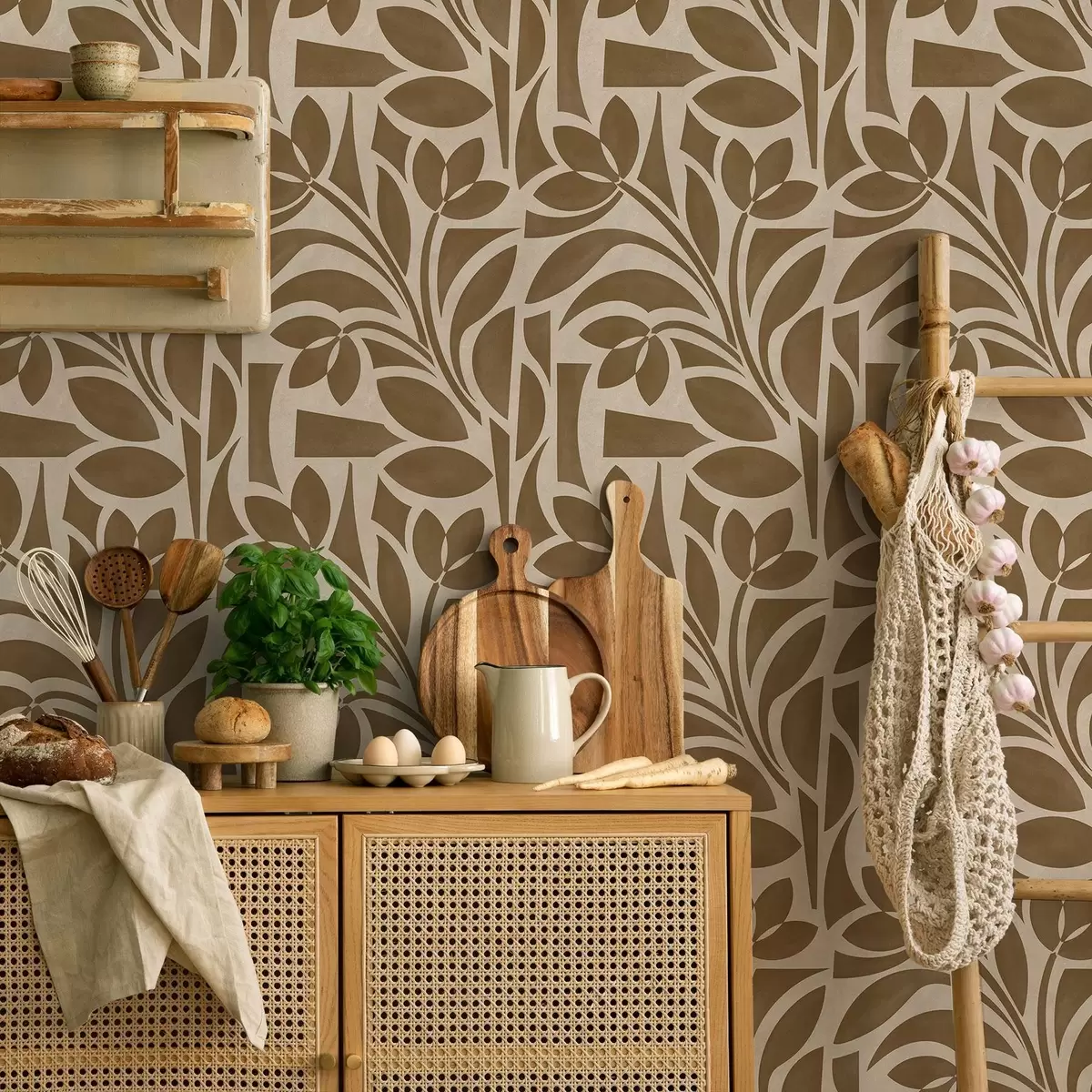 Tapeet Geomeetrilised lehe siluetid, karamellpruunid beežil Nr. a00679