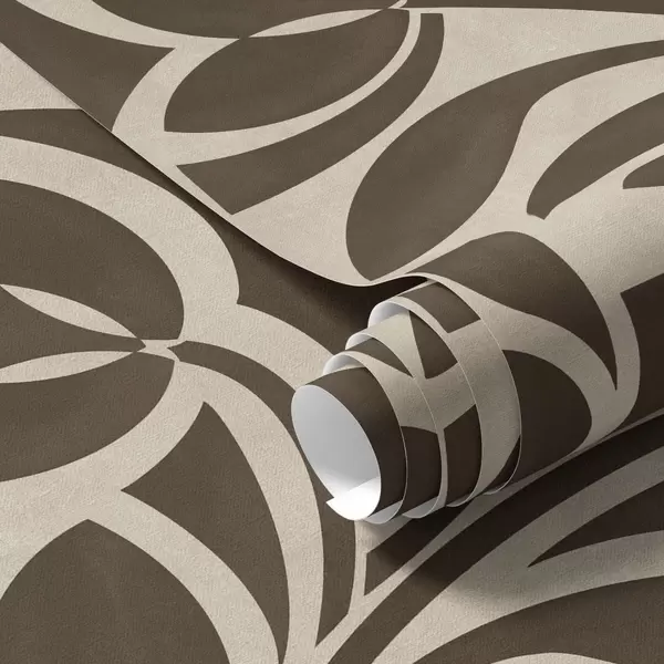 Tapeet Geomeetrilised lehe siluetid, tumepruun beežil Nr. a00679v1