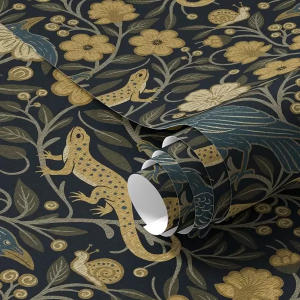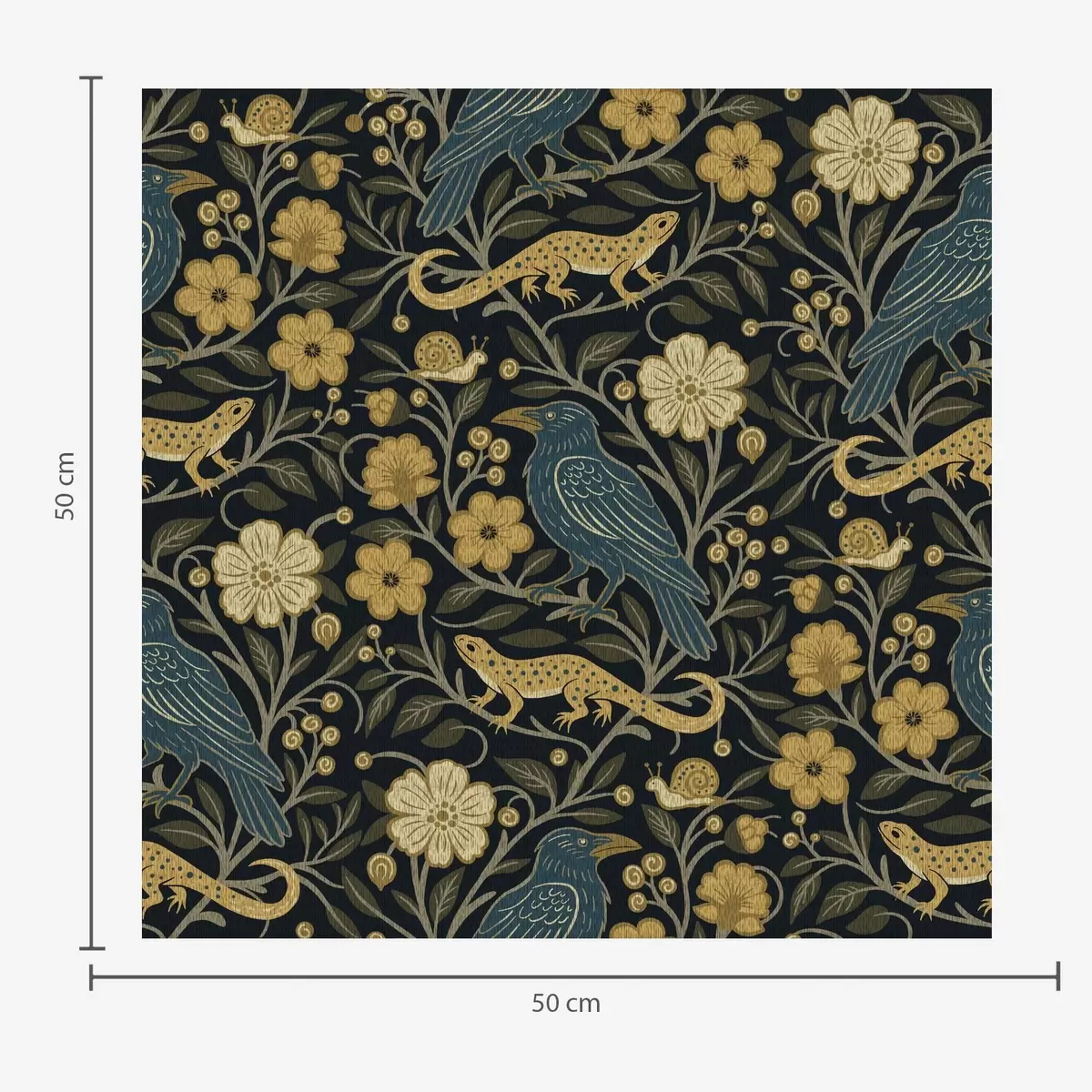 Tapeet Linnud, sisalikud ja teod lillede seas tumedal taustal Nr. a00691