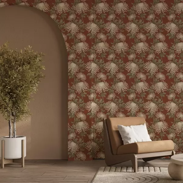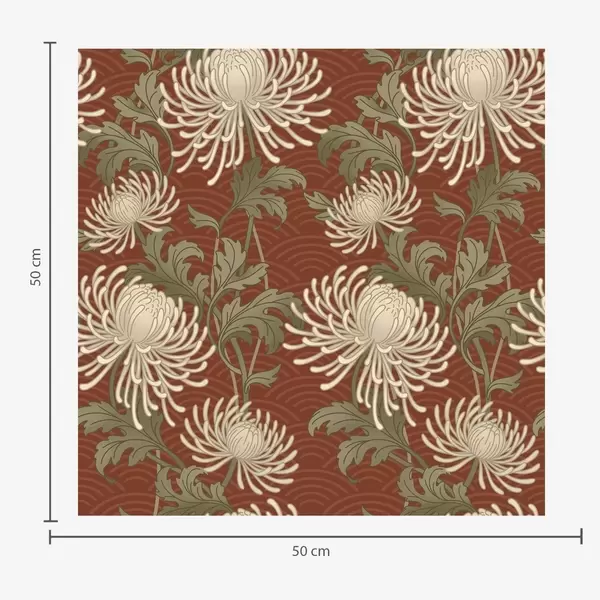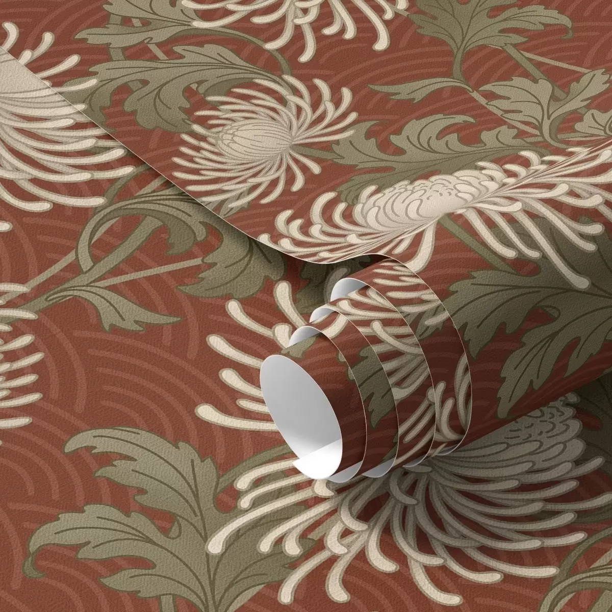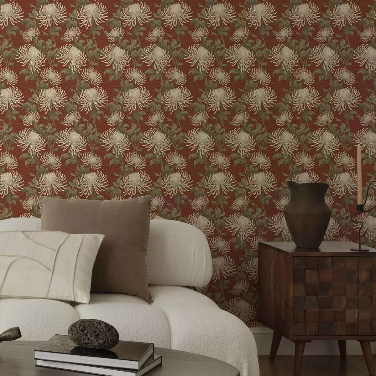 Tapeet Kreemikarva krüsanteemid terrakota taustal, Aasia stiilis Nr. a00693