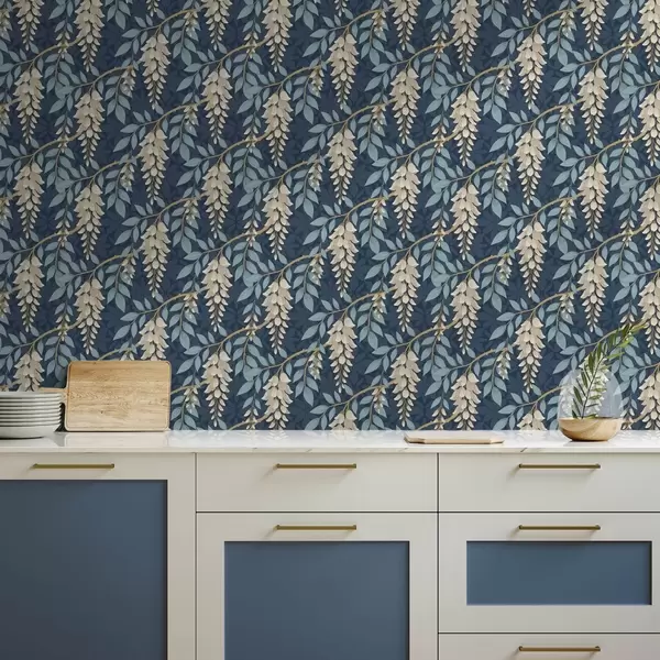 Tapeet Siniste lehtedega sinilill tumesinisel taustal Nr. a00694v2