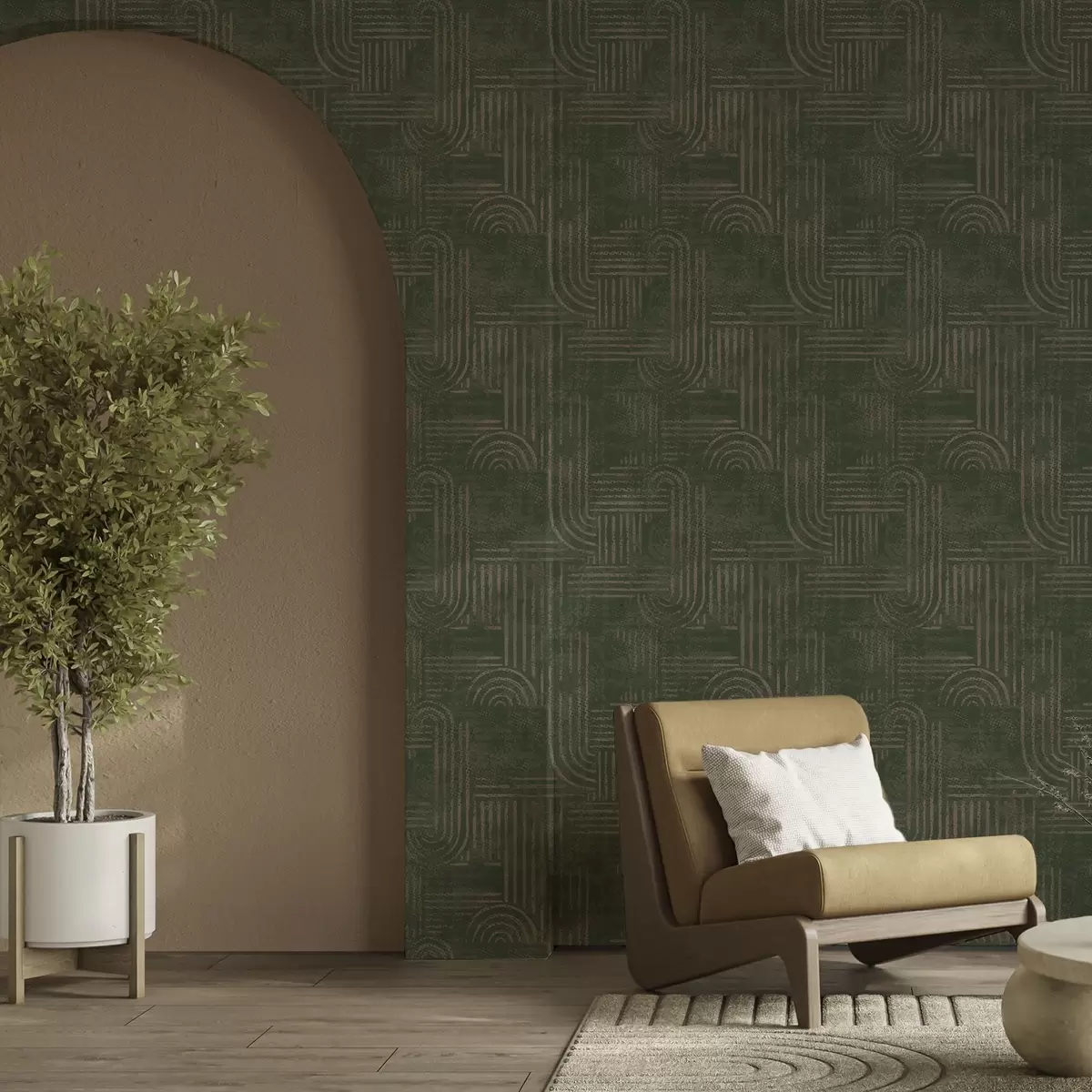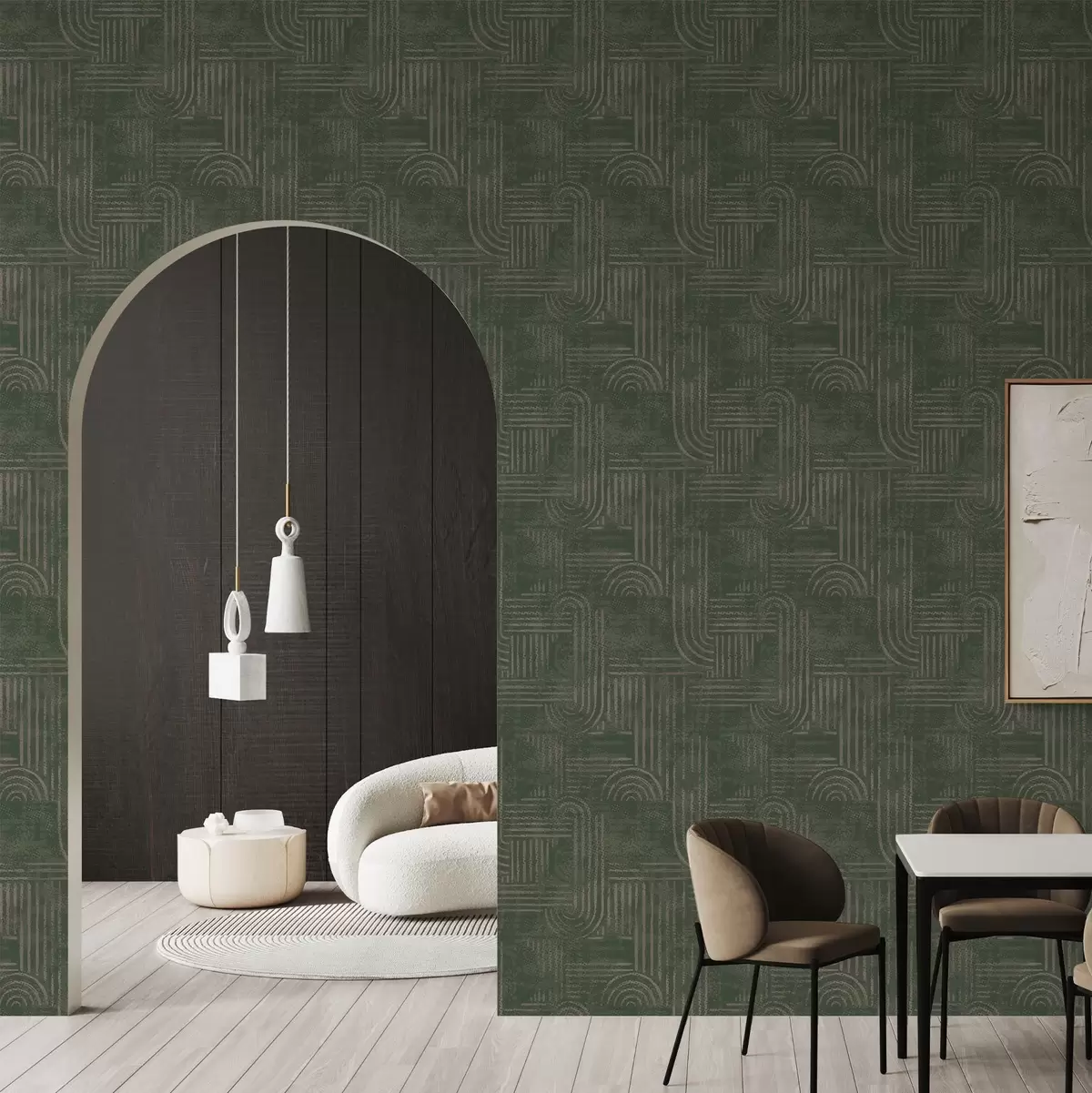 Tapeet Geomeetriline muster kaartega rohelises värvipalettis Nr. a00697