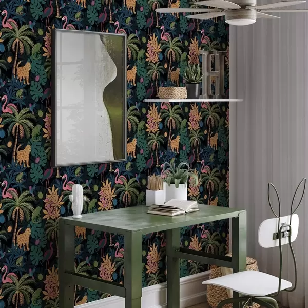 Tapeet Ereval taustal lehtede vahel säravad troopilised loomad Nr. a00701