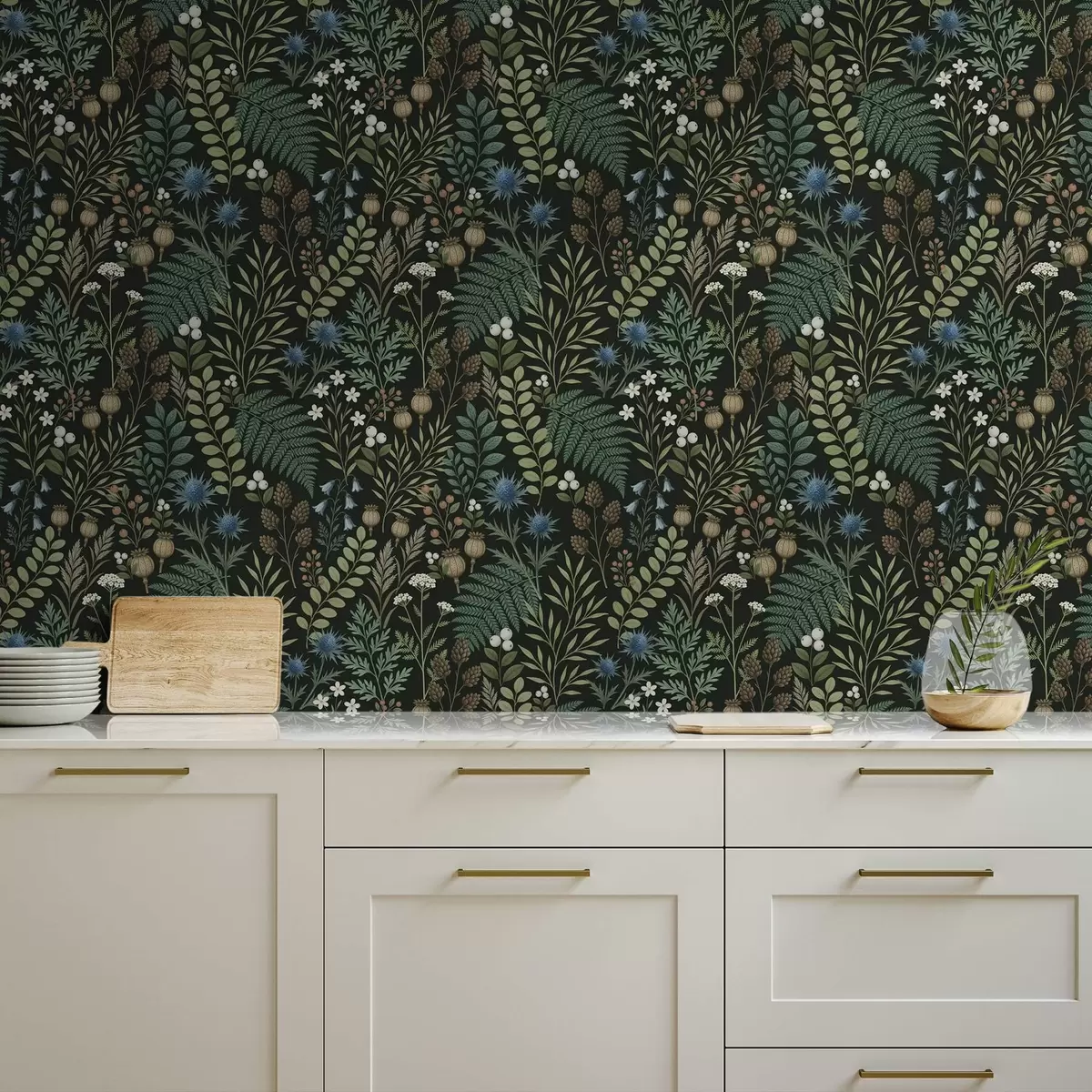 Tapeet Põllu rohi, marjad ja seemned tumedal taustal Nr. a00706