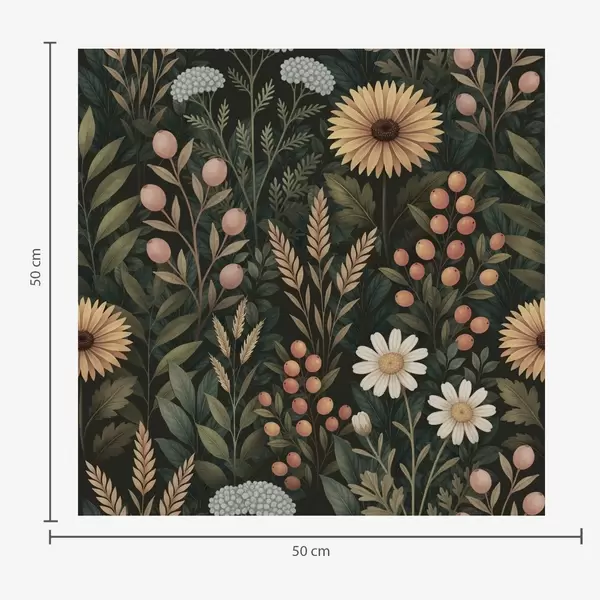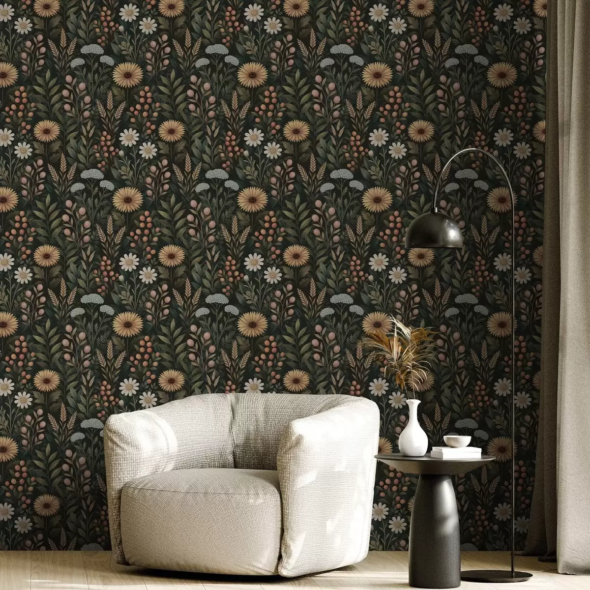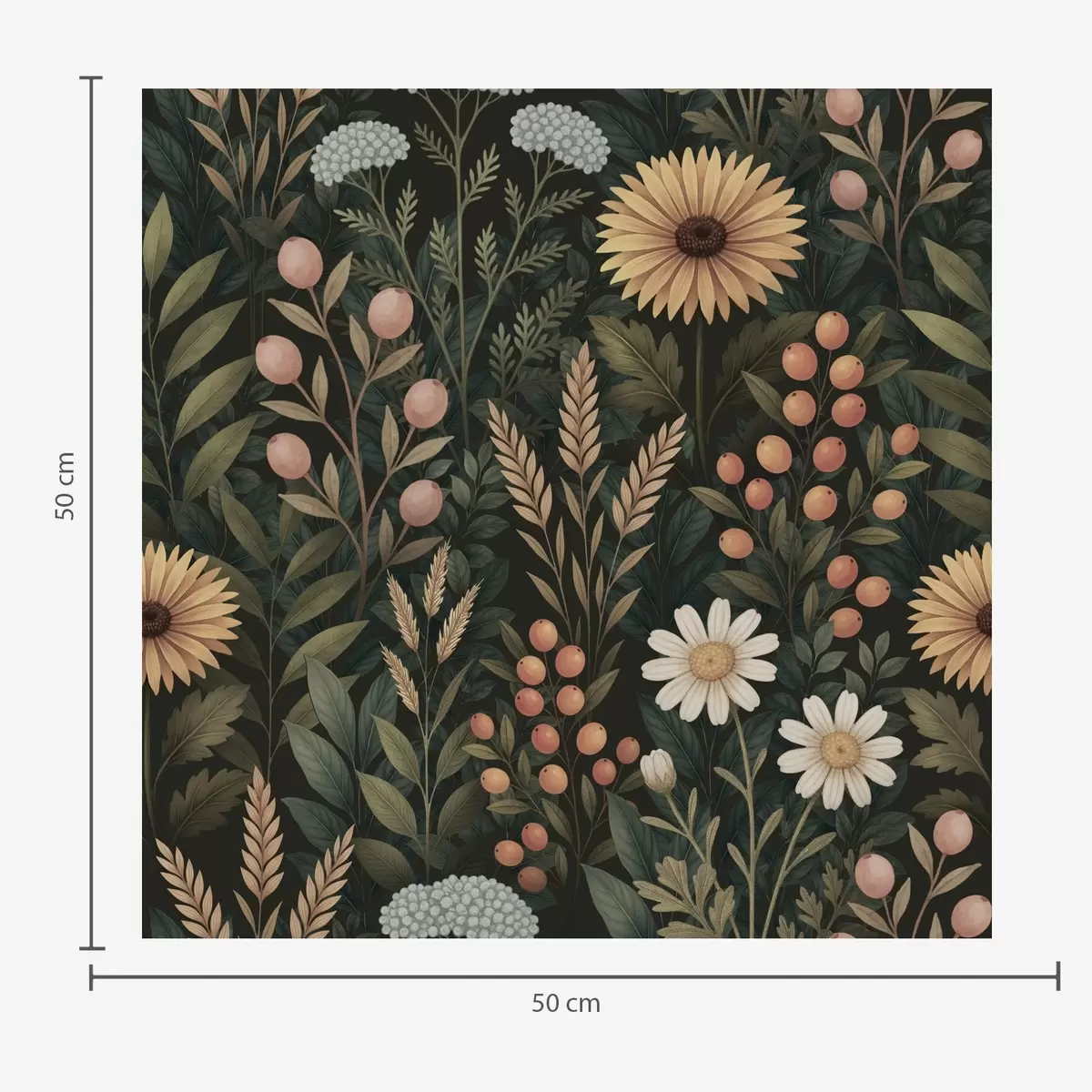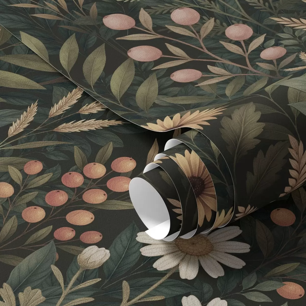 Tapeet Looduslikud lilled ja marjad tumedal taustal, looduslik ornament Nr. a00707