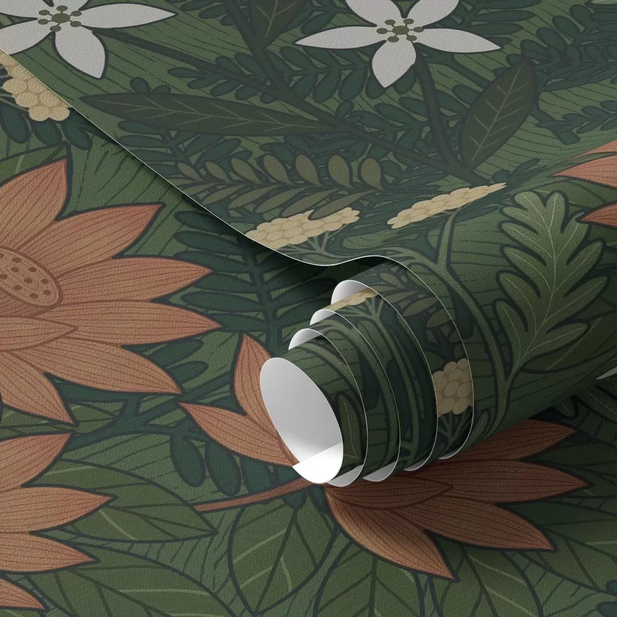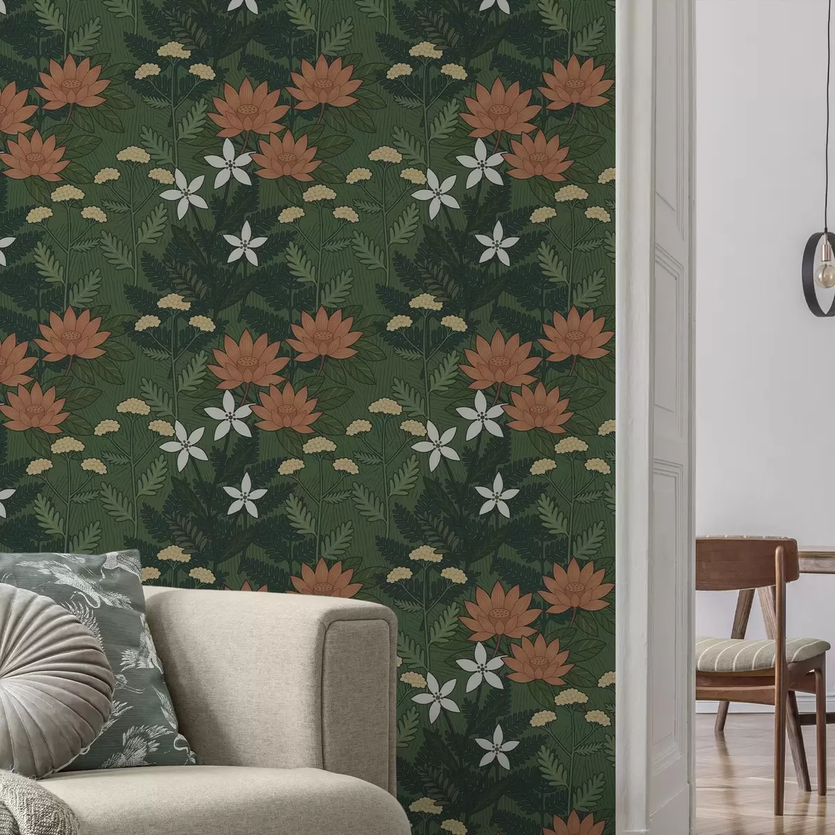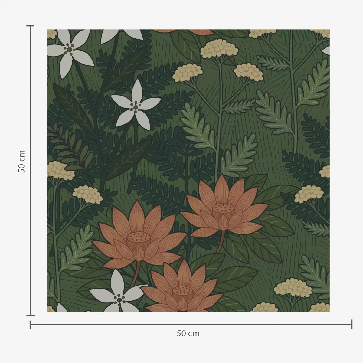 Tapeet Suured lilled rohelise lehekuu keskel, dekoratiivne kompositsioon Nr. a00708