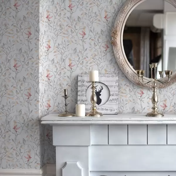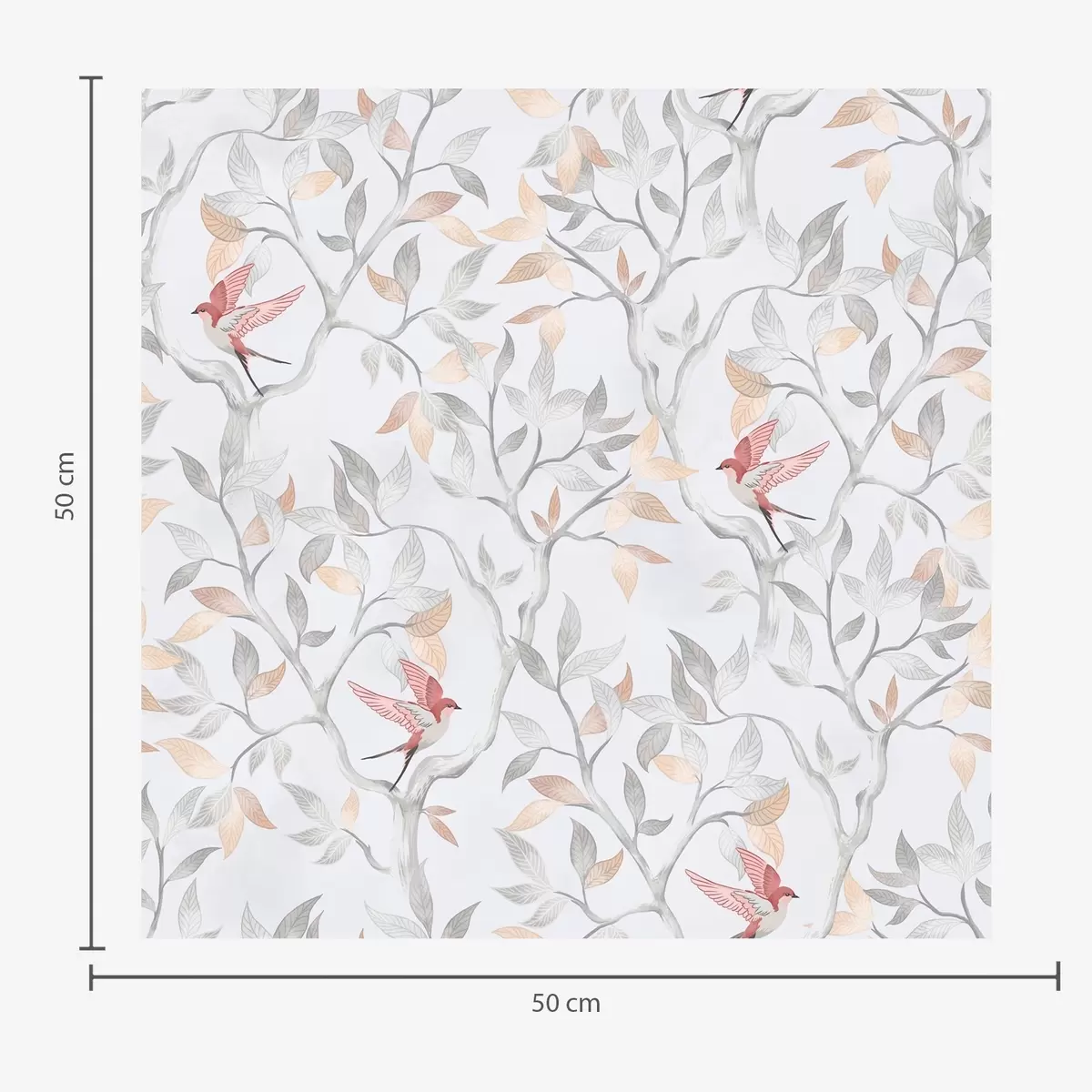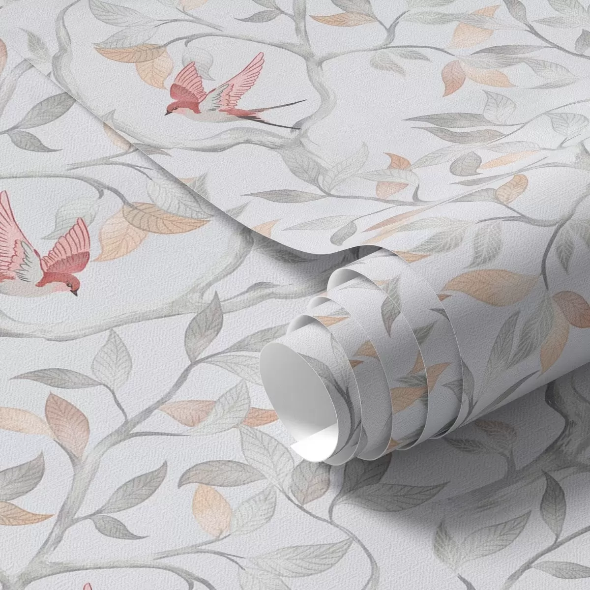Tapeet Kerged oksad lehtede ja lindudega virsiku toonides Nr. a00716